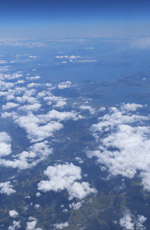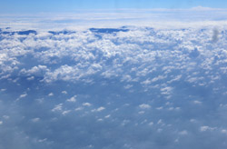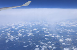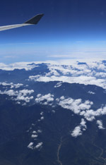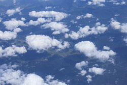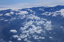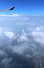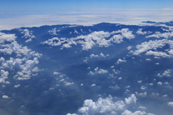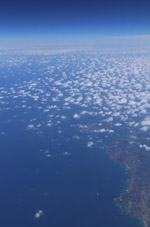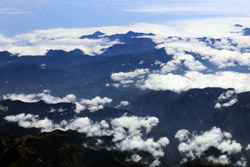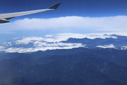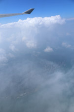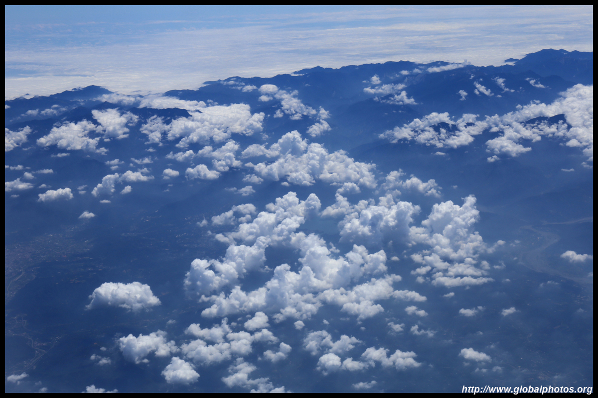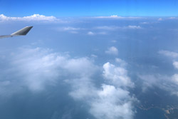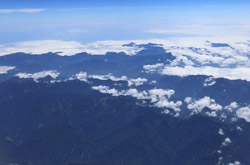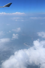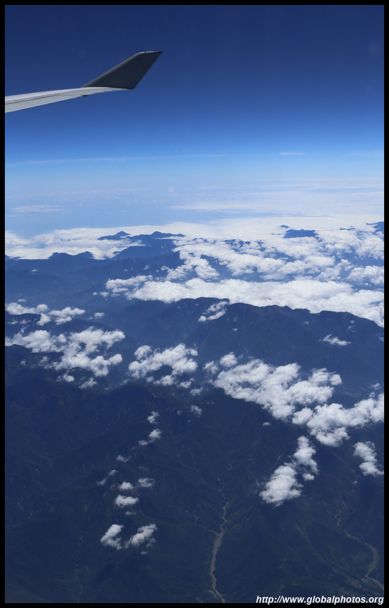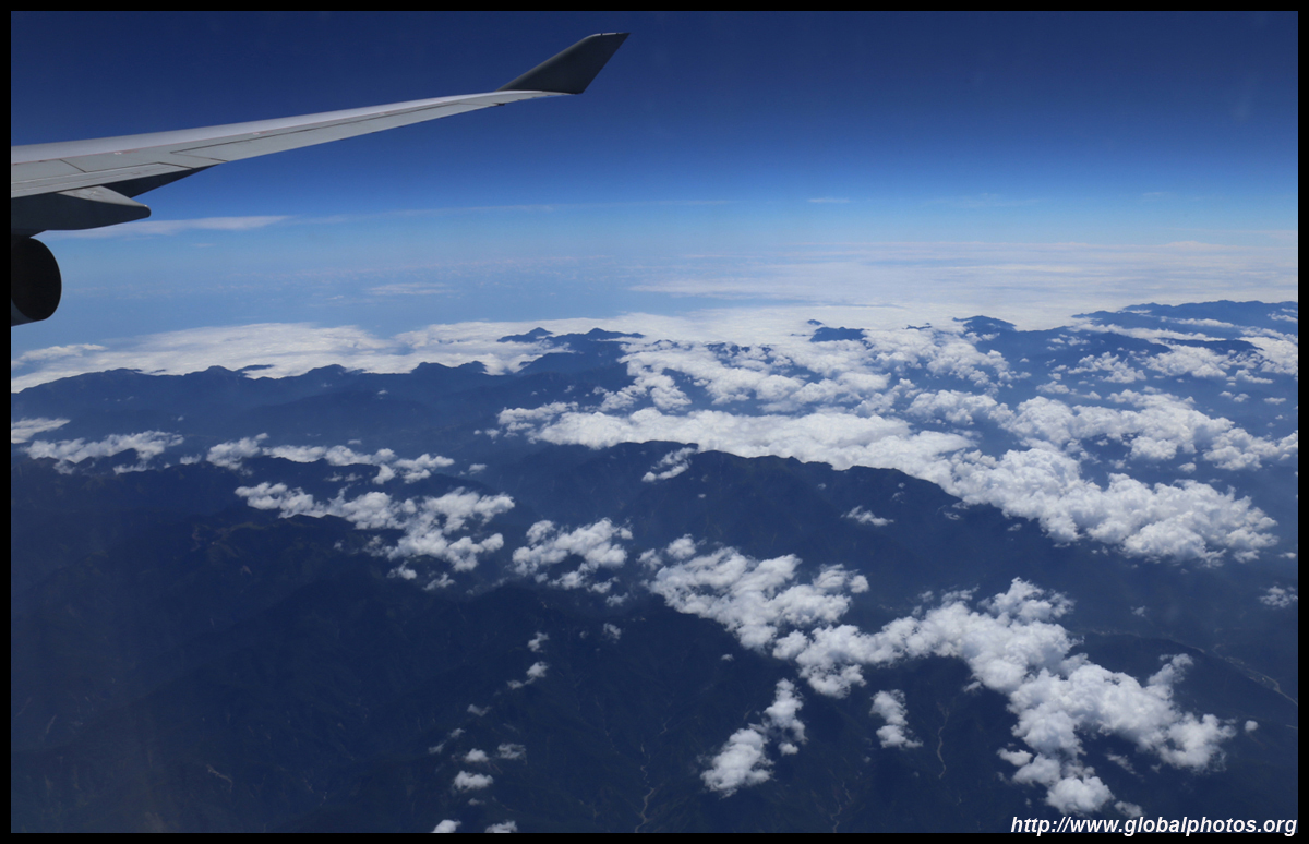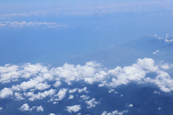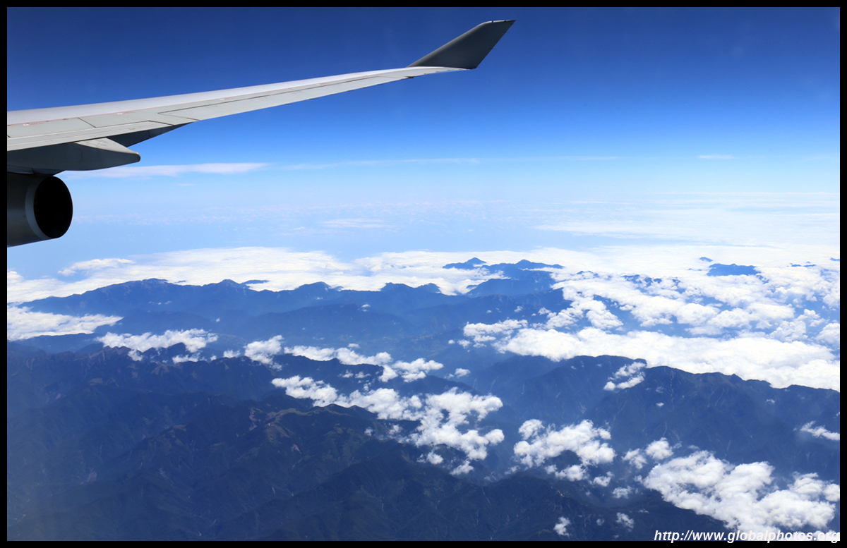 Soon, Taiwan's coastline emerged. They were enjoying a nice day as well, and having clouds hover around the mountains was a beautiful sight.
