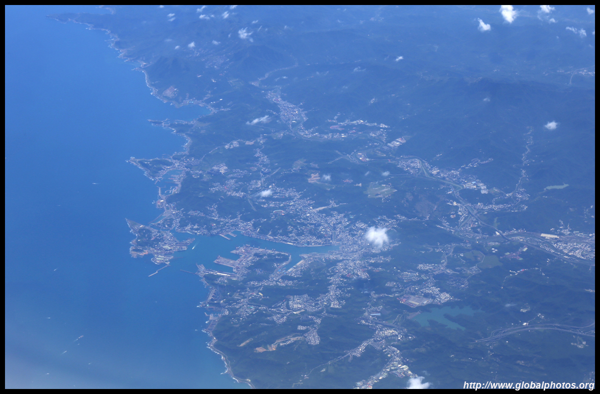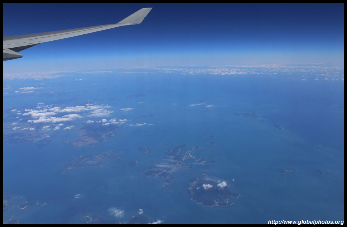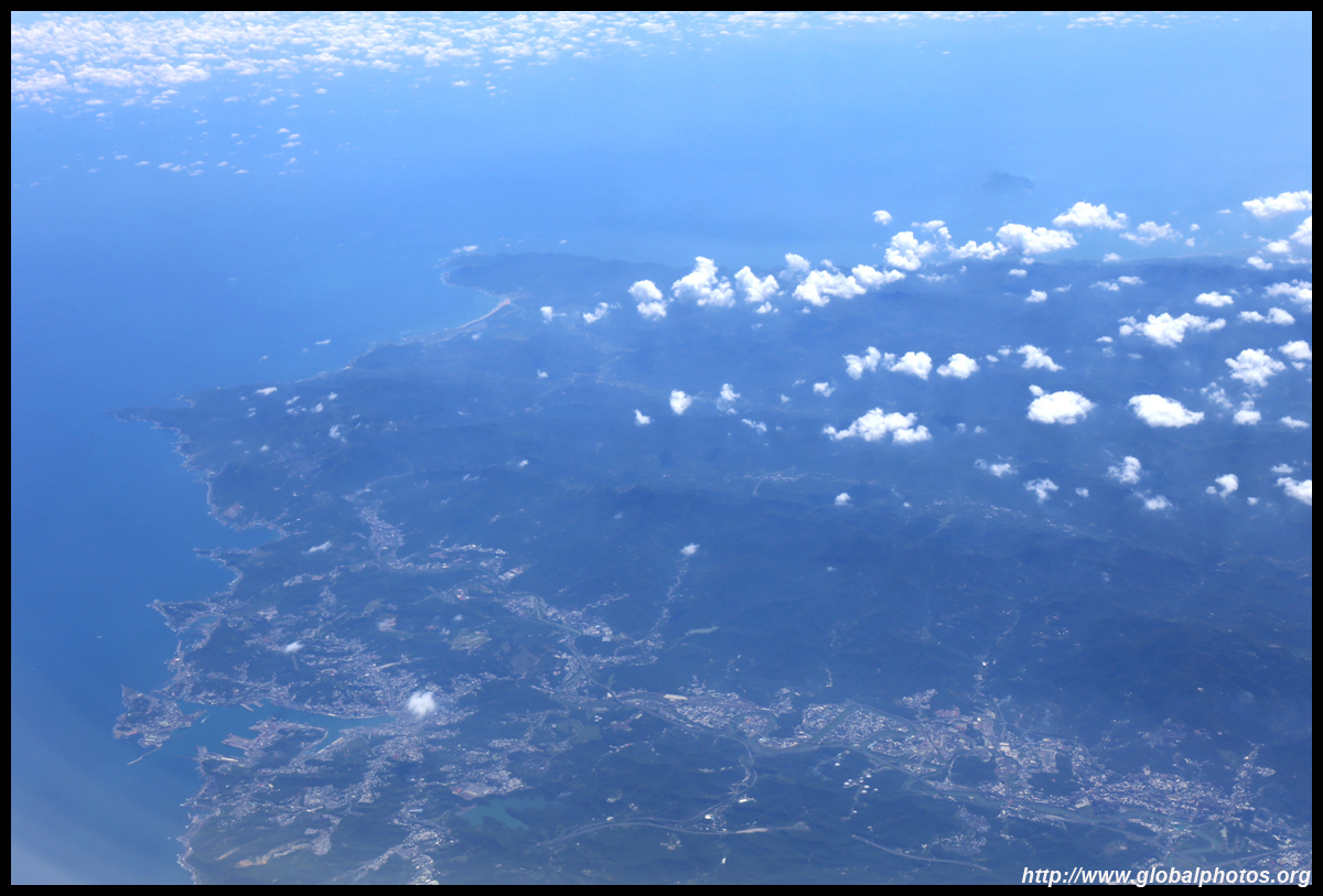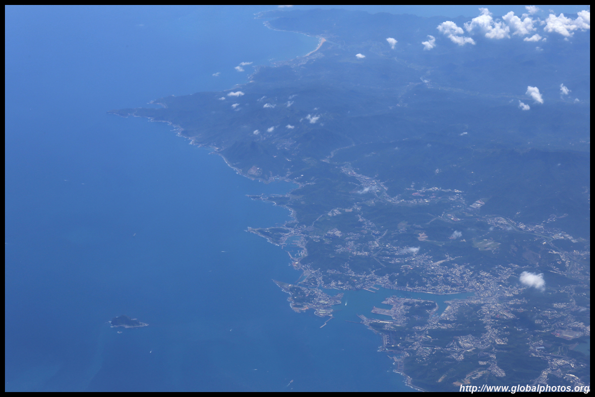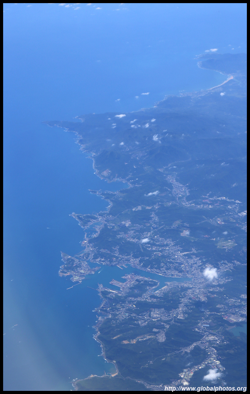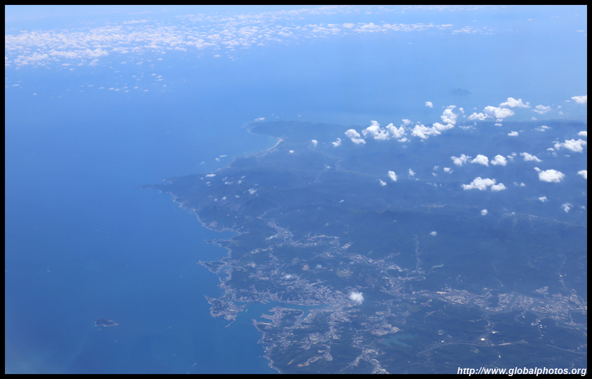 I couldn't see Taipei today, and we headed across the blue, blue ocean after passing what appears to be Keelung in these photos. Seems my right window seat wasn't giving me much luck today.