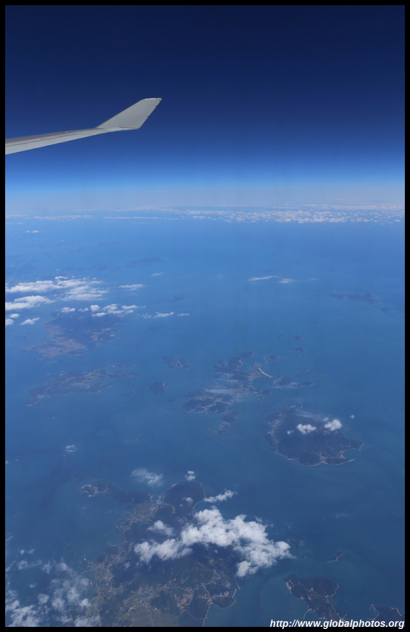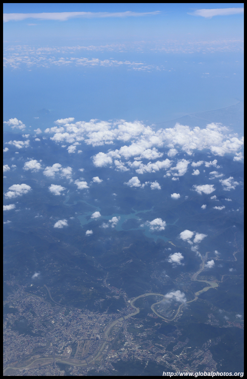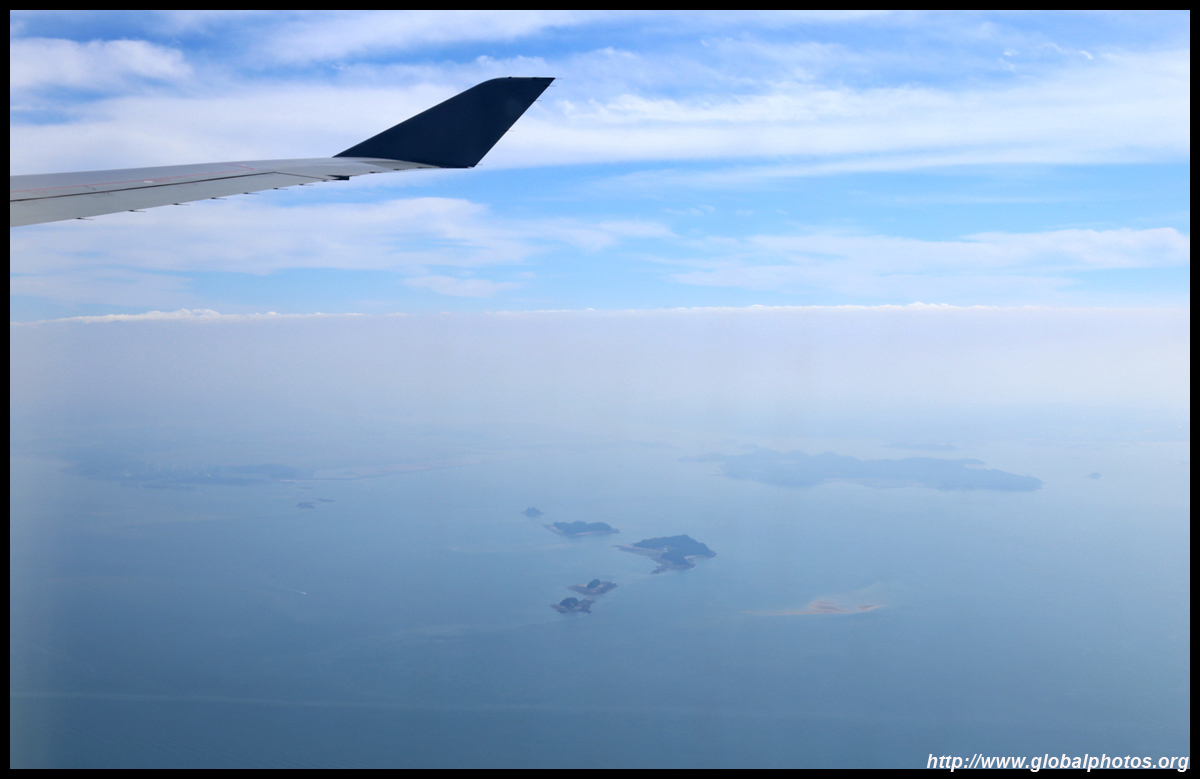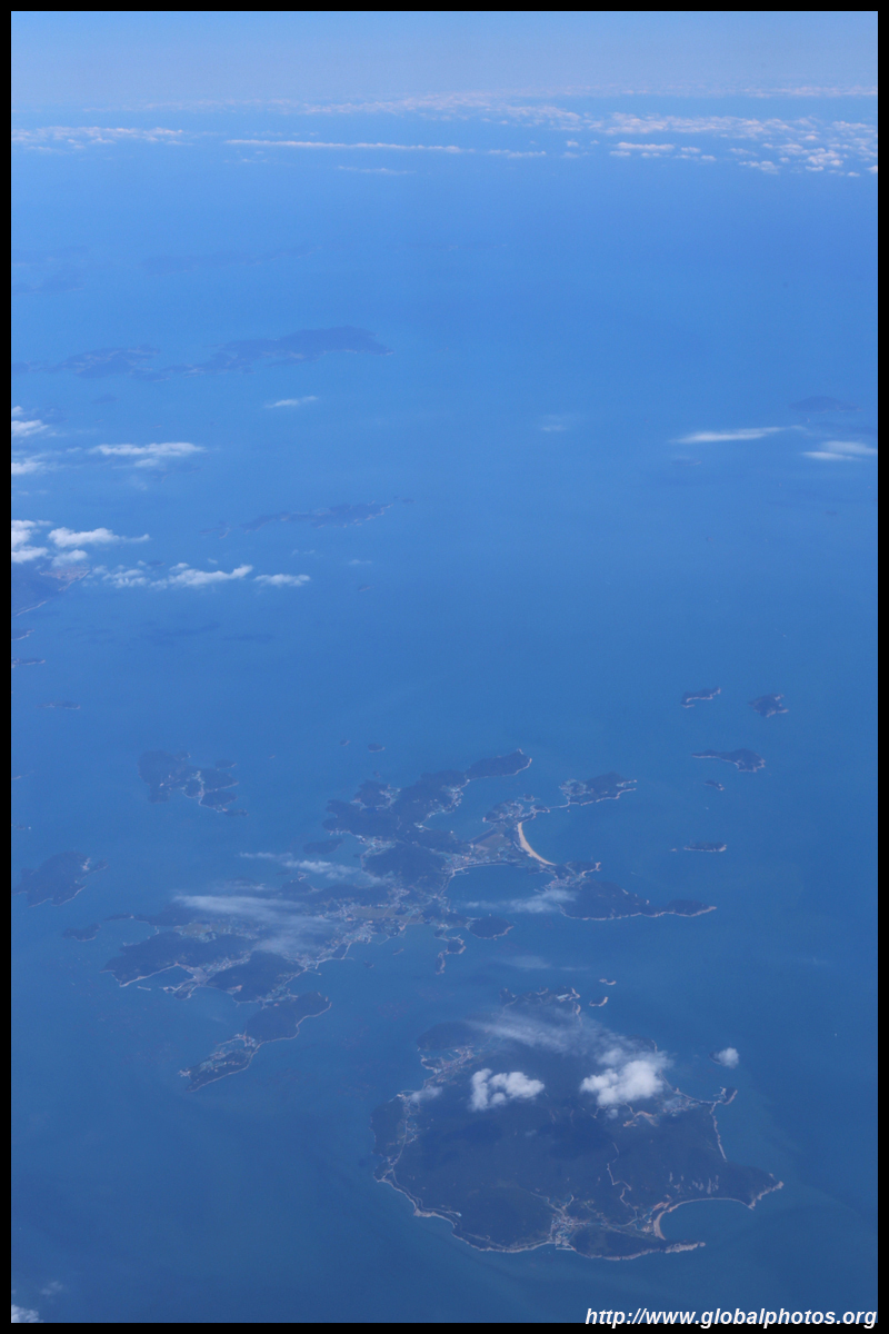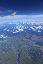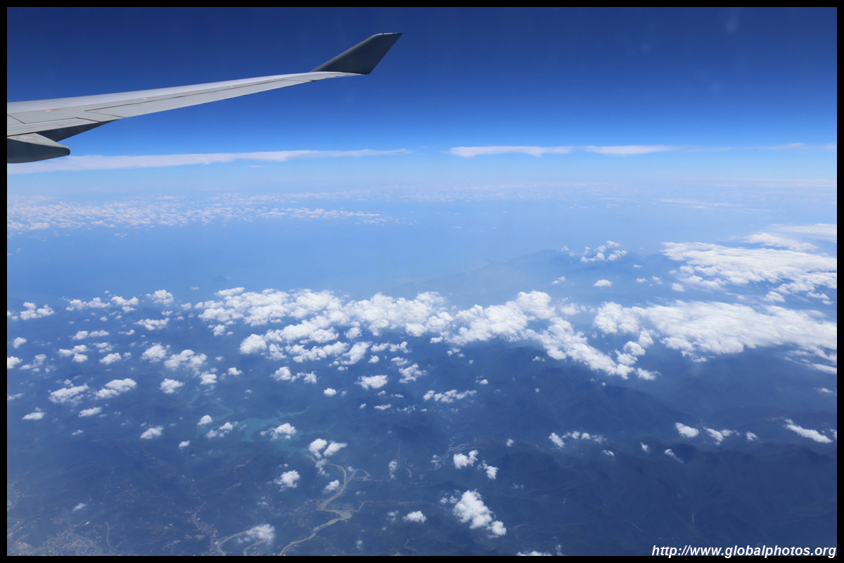 I couldn't see Taipei today, and we headed across the blue, blue ocean after passing what appears to be Keelung in these photos. Seems my right window seat wasn't giving me much luck today.