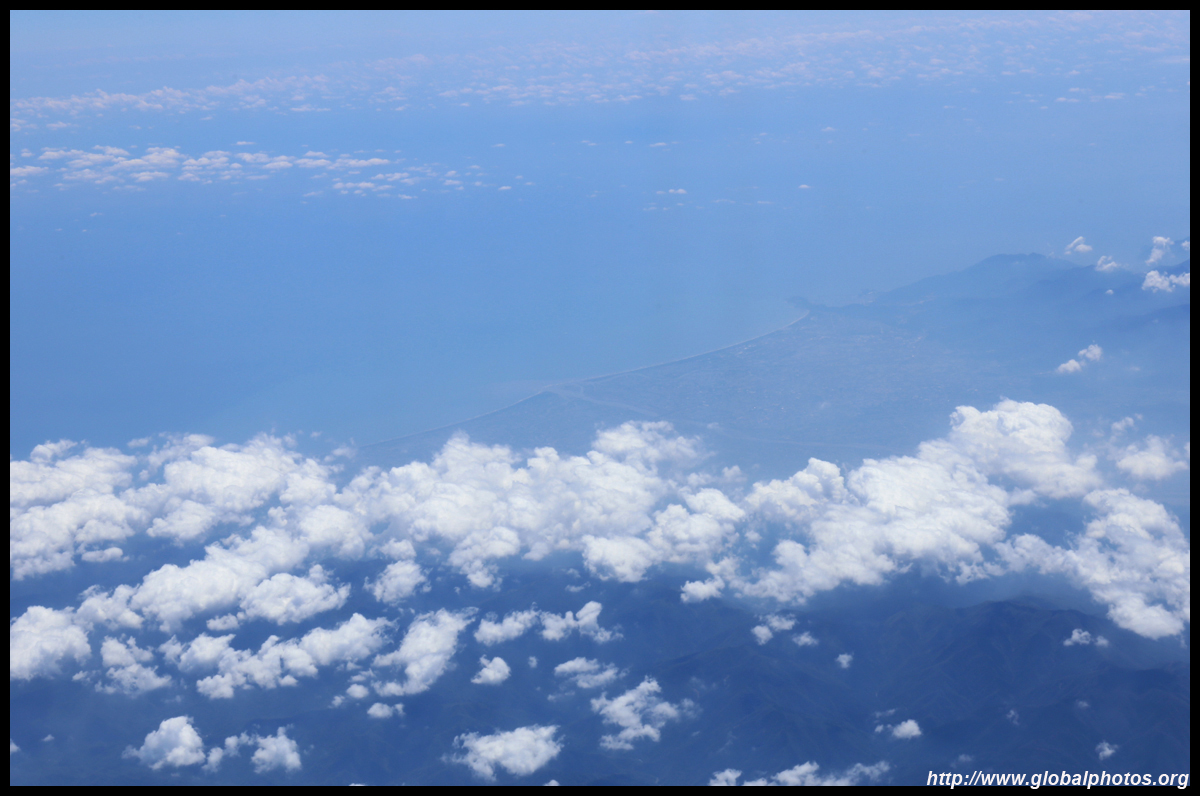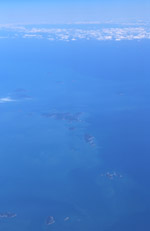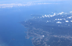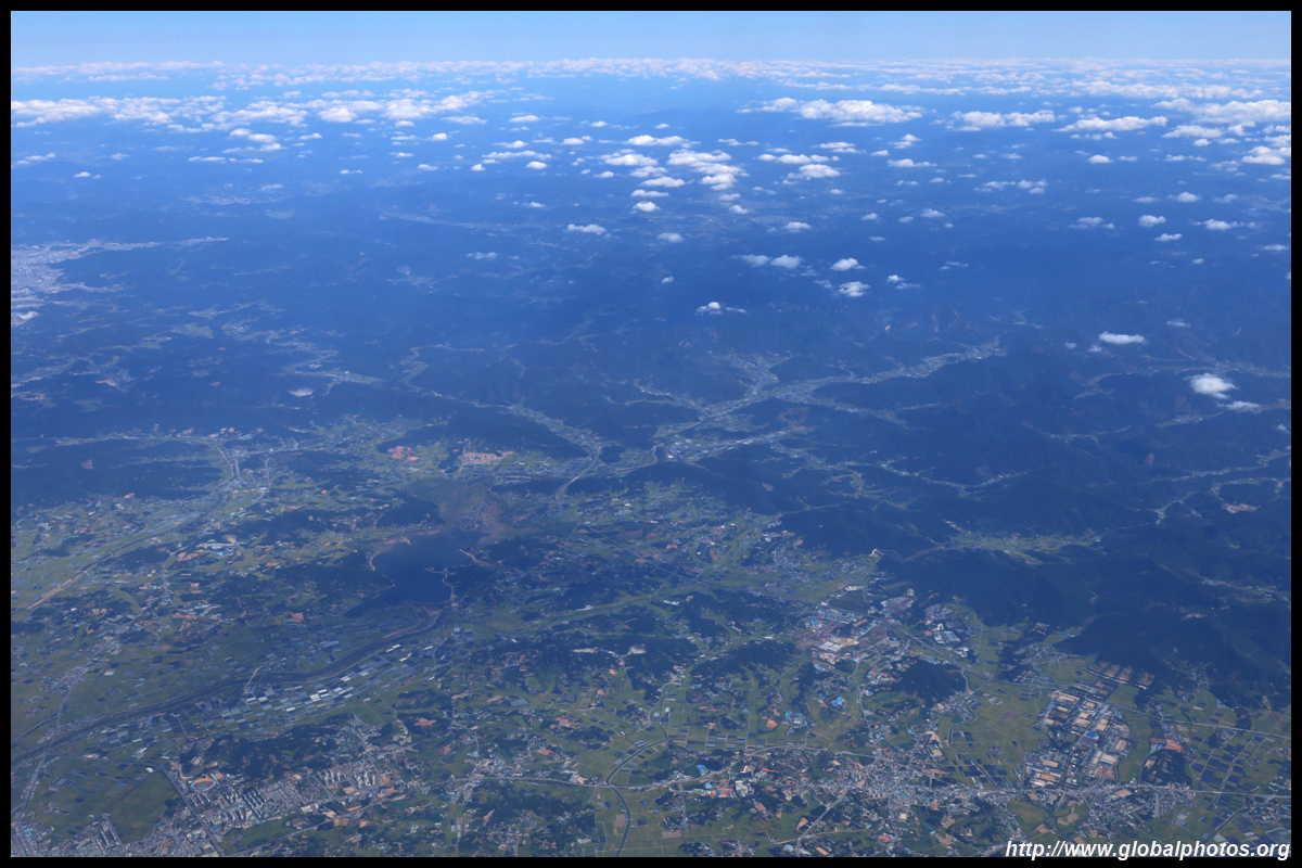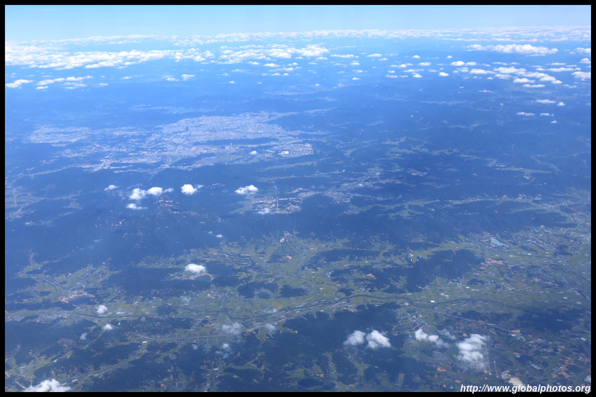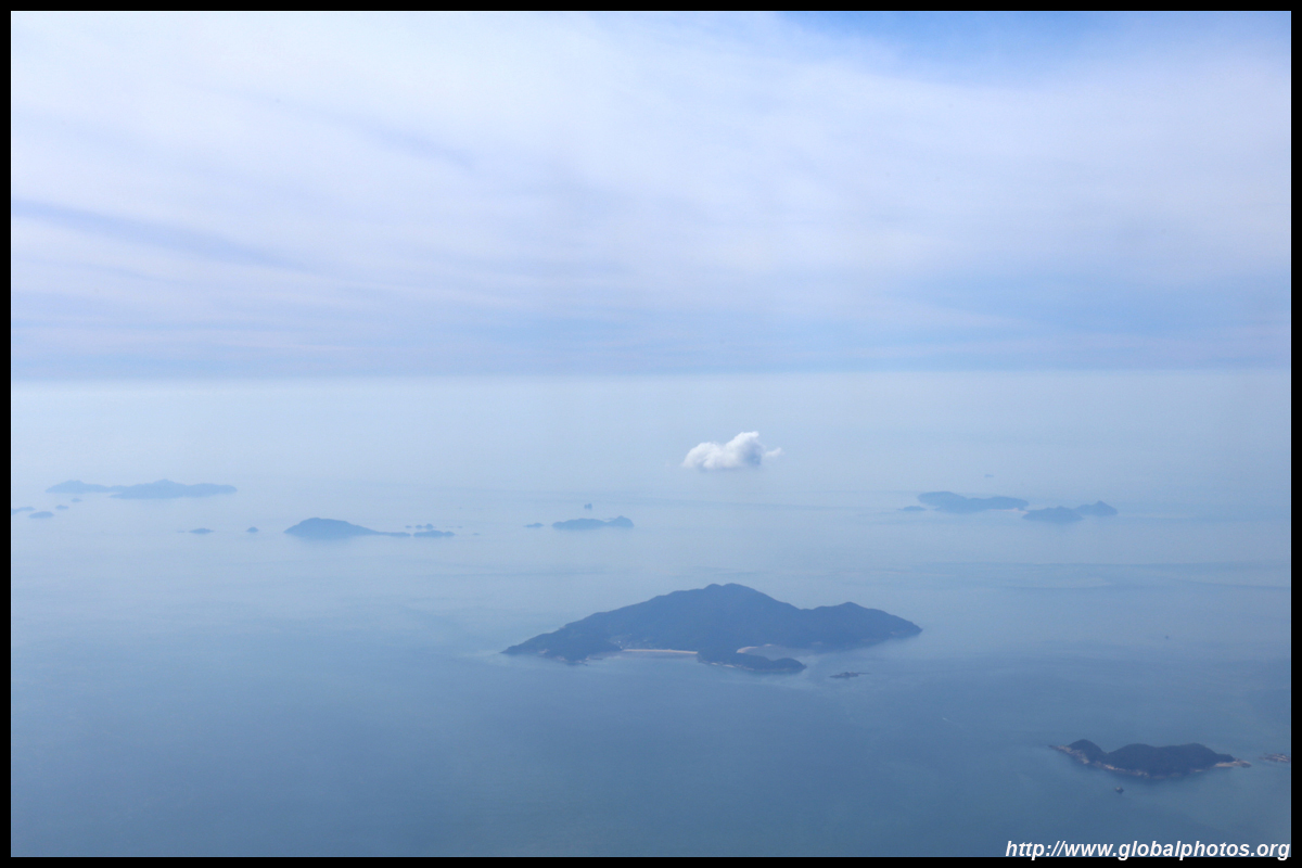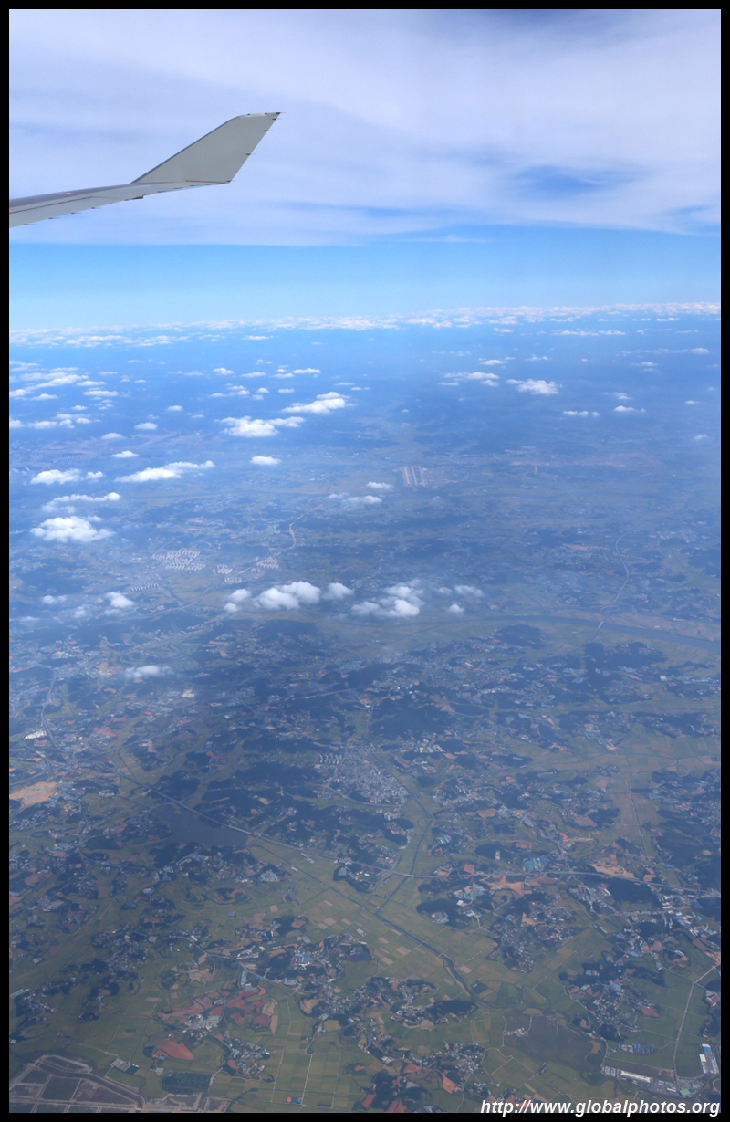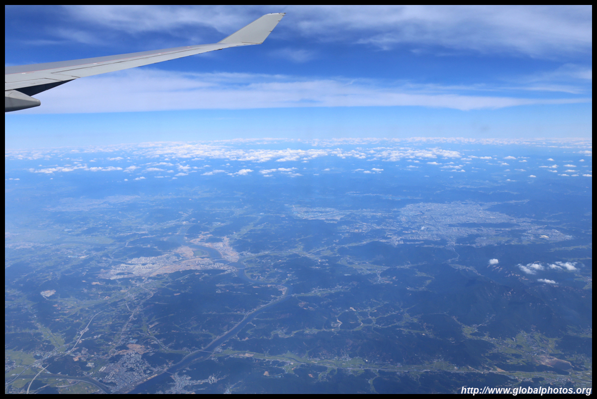 I couldn't see Taipei today, and we headed across the blue, blue ocean after passing what appears to be Keelung in these photos. Seems my right window seat wasn't giving me much luck today.