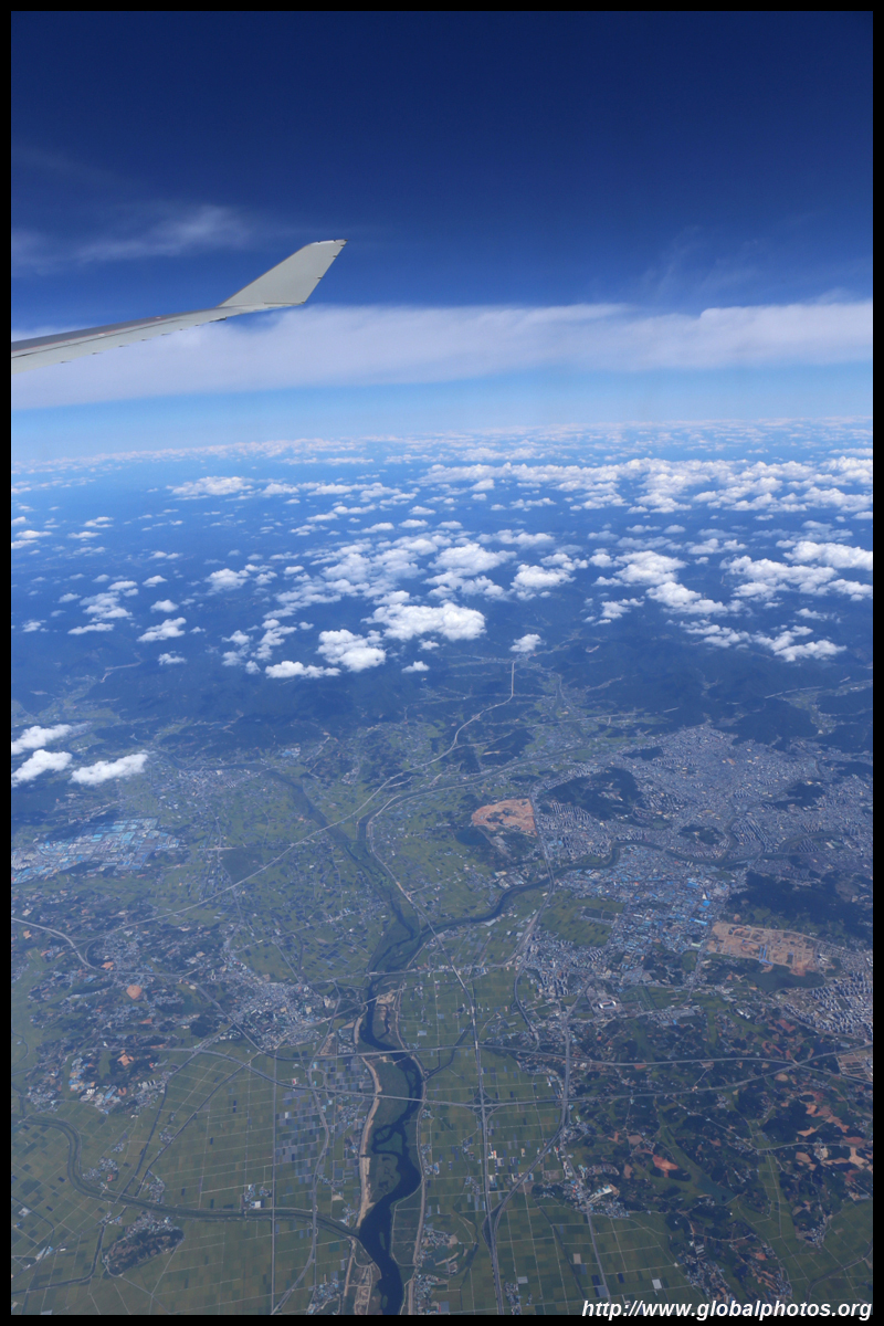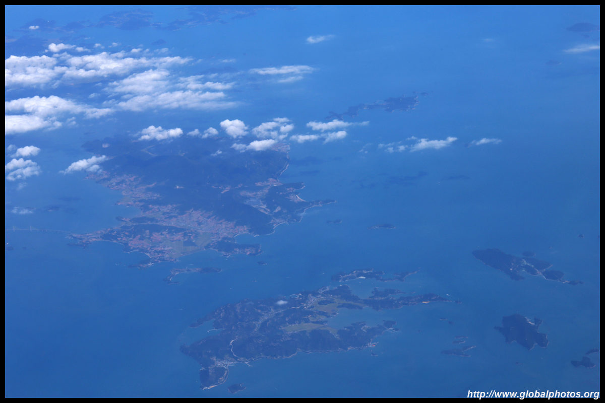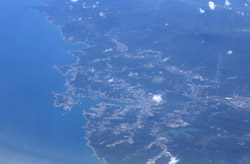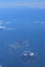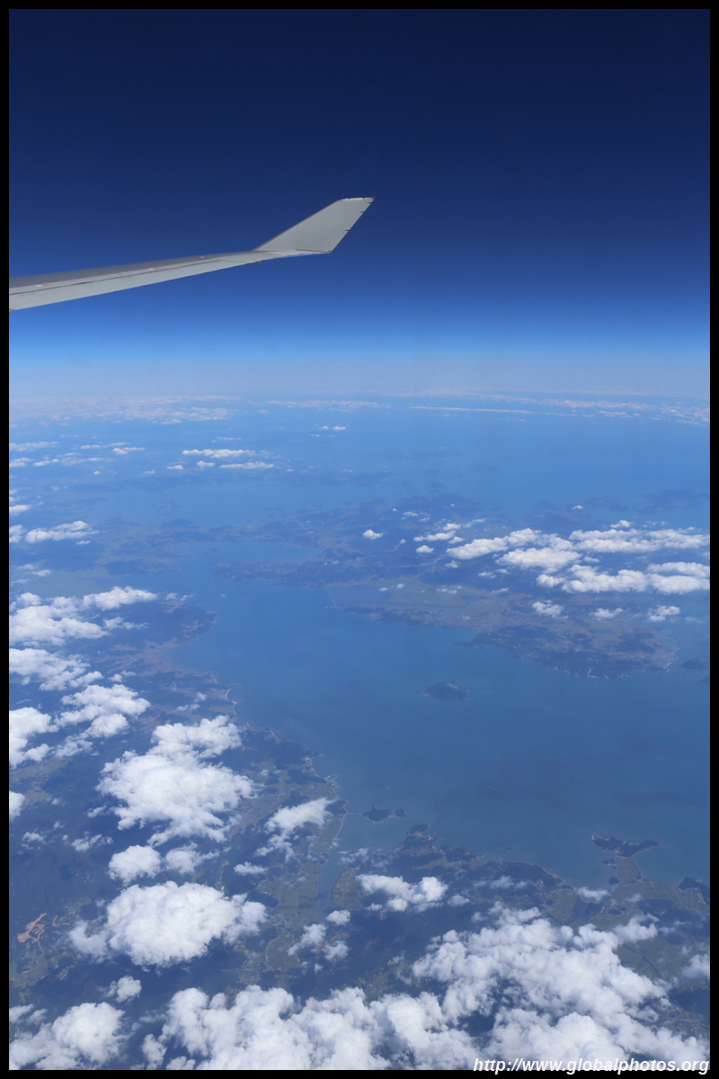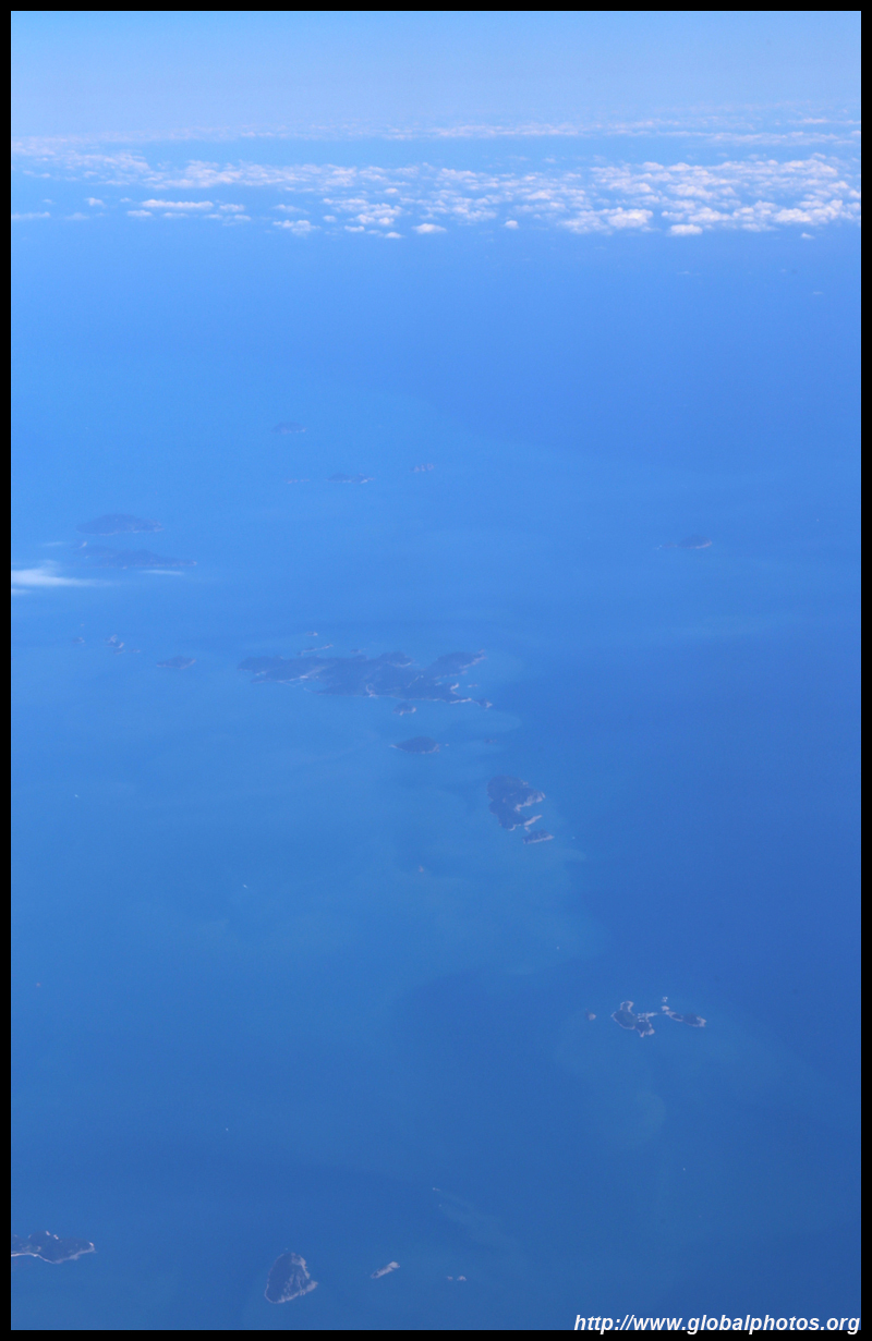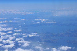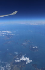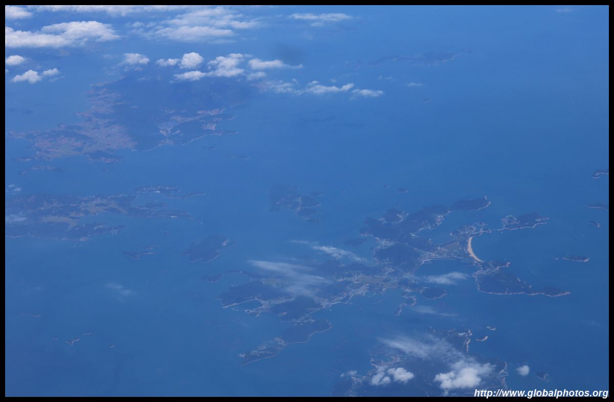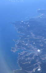 I couldn't see Taipei today, and we headed across the blue, blue ocean after passing what appears to be Keelung in these photos. Seems my right window seat wasn't giving me much luck today.