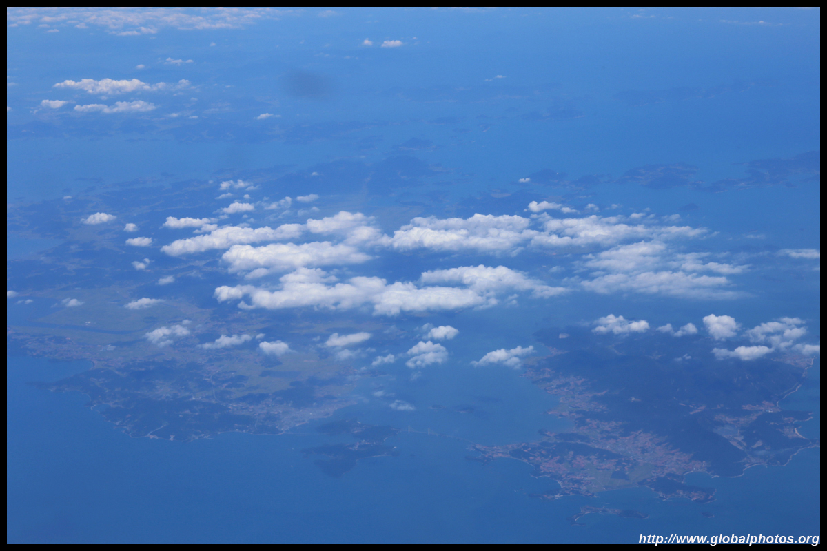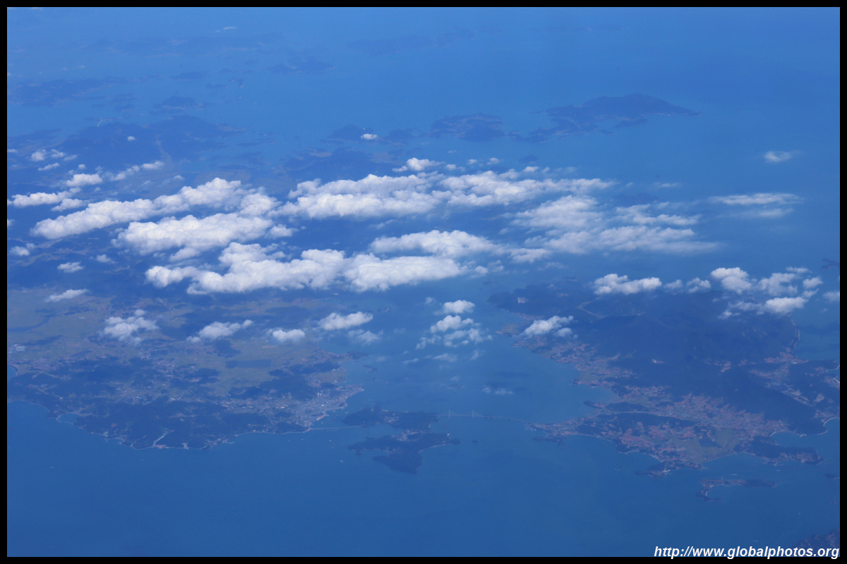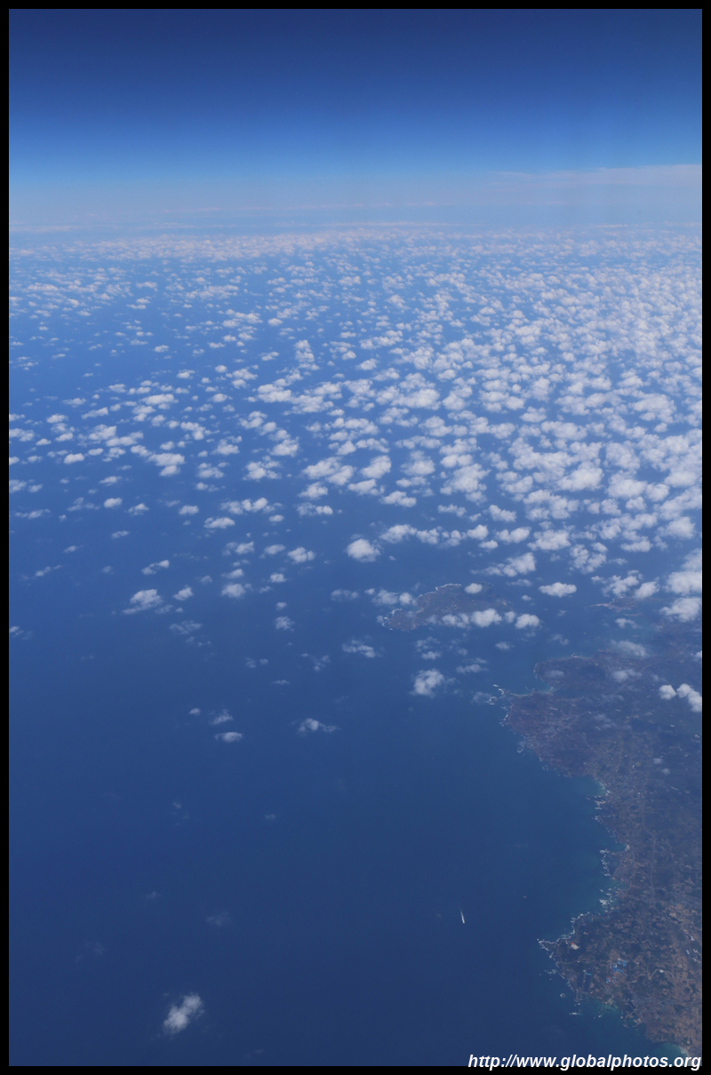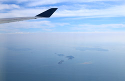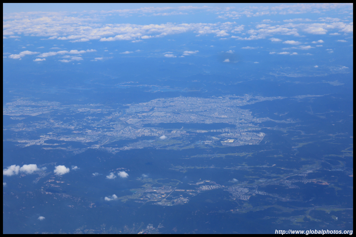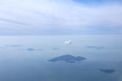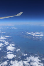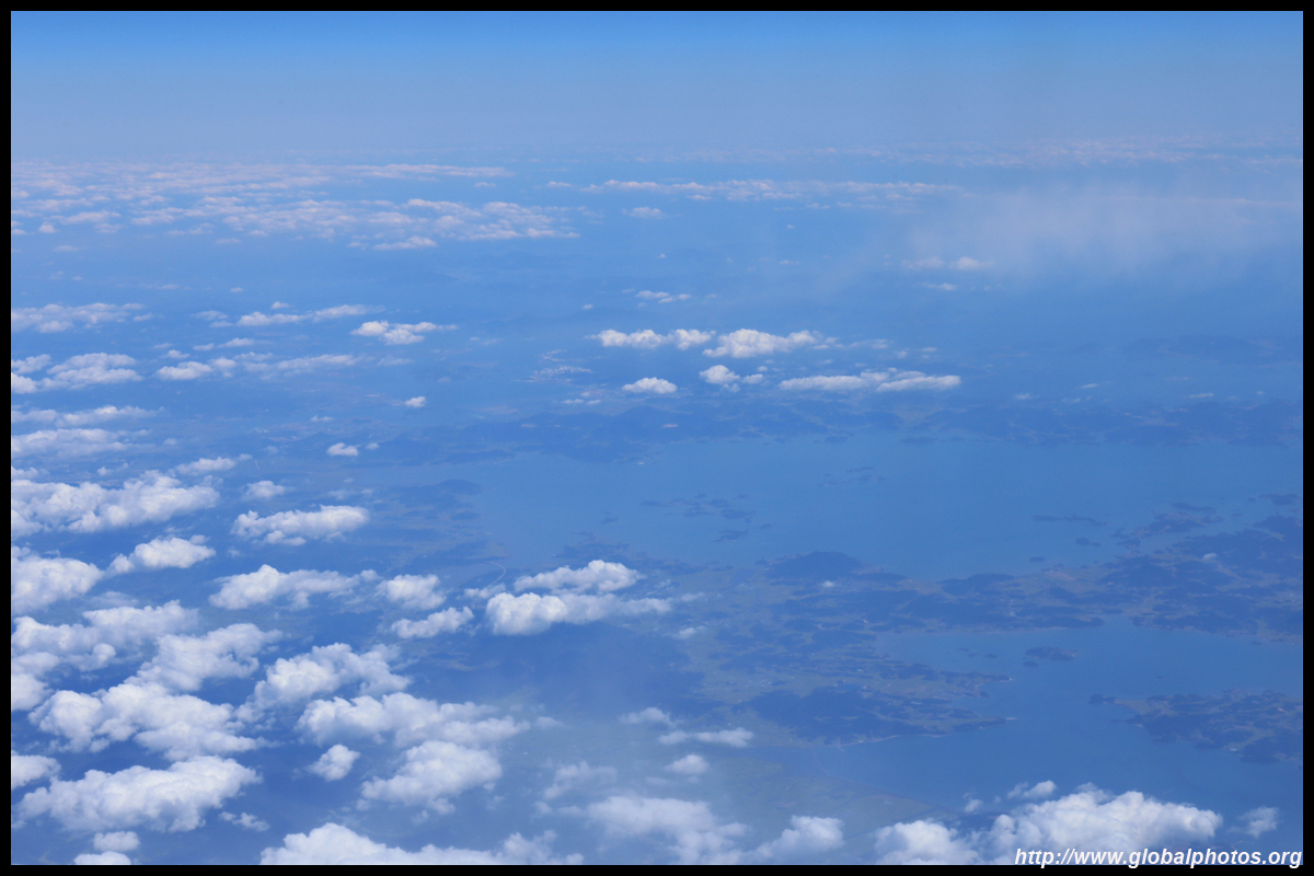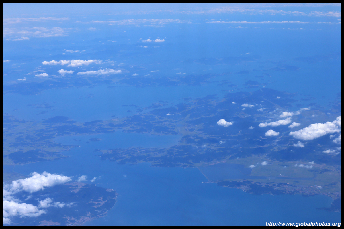 I couldn't see Taipei today, and we headed across the blue, blue ocean after passing what appears to be Keelung in these photos. Seems my right window seat wasn't giving me much luck today.