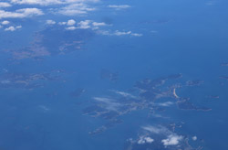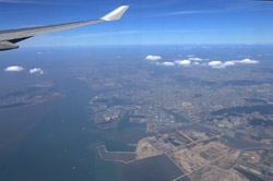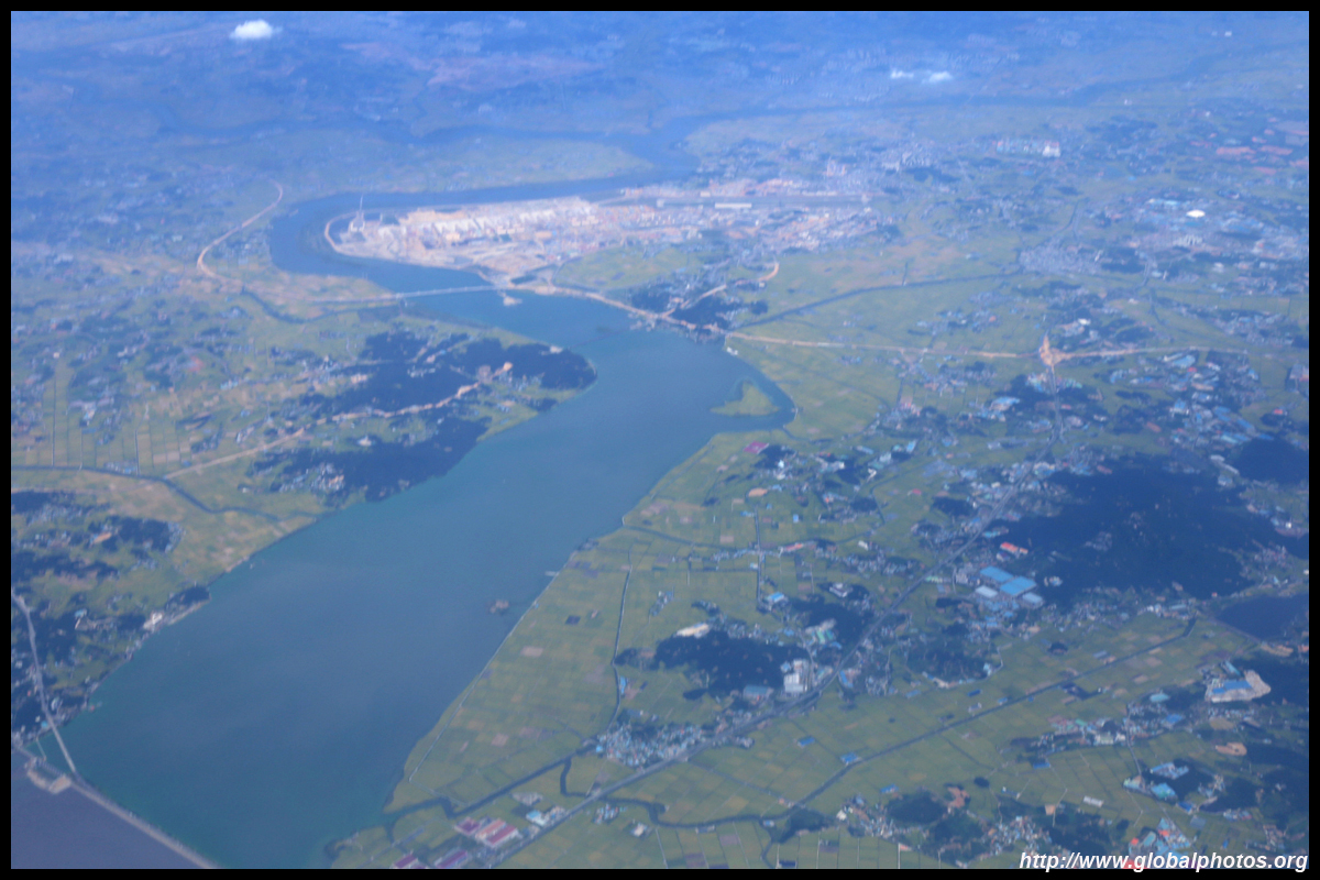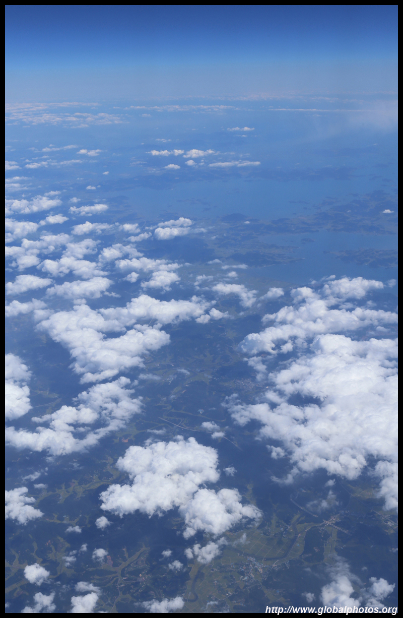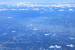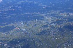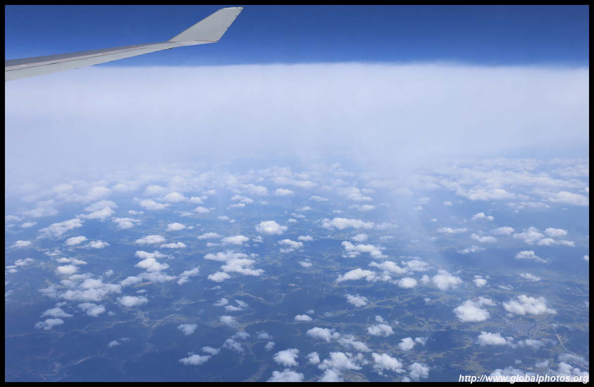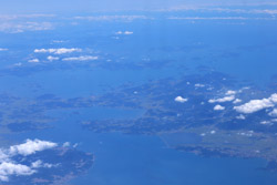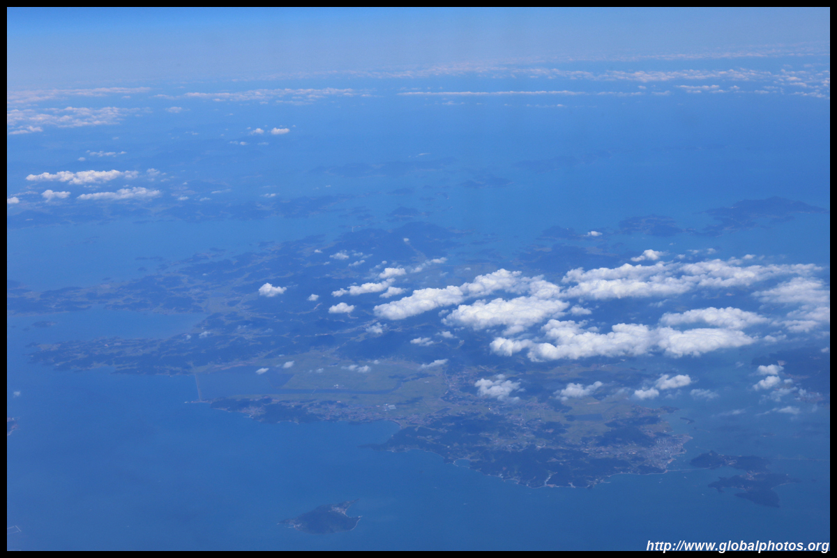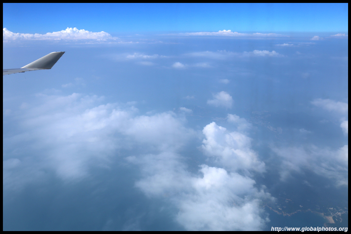 I couldn't see Taipei today, and we headed across the blue, blue ocean after passing what appears to be Keelung in these photos. Seems my right window seat wasn't giving me much luck today.