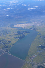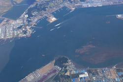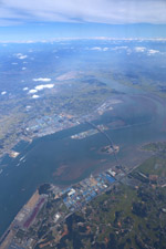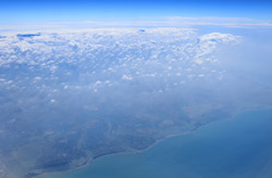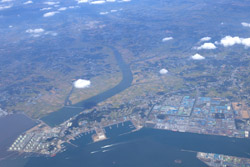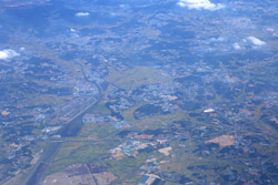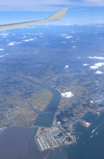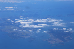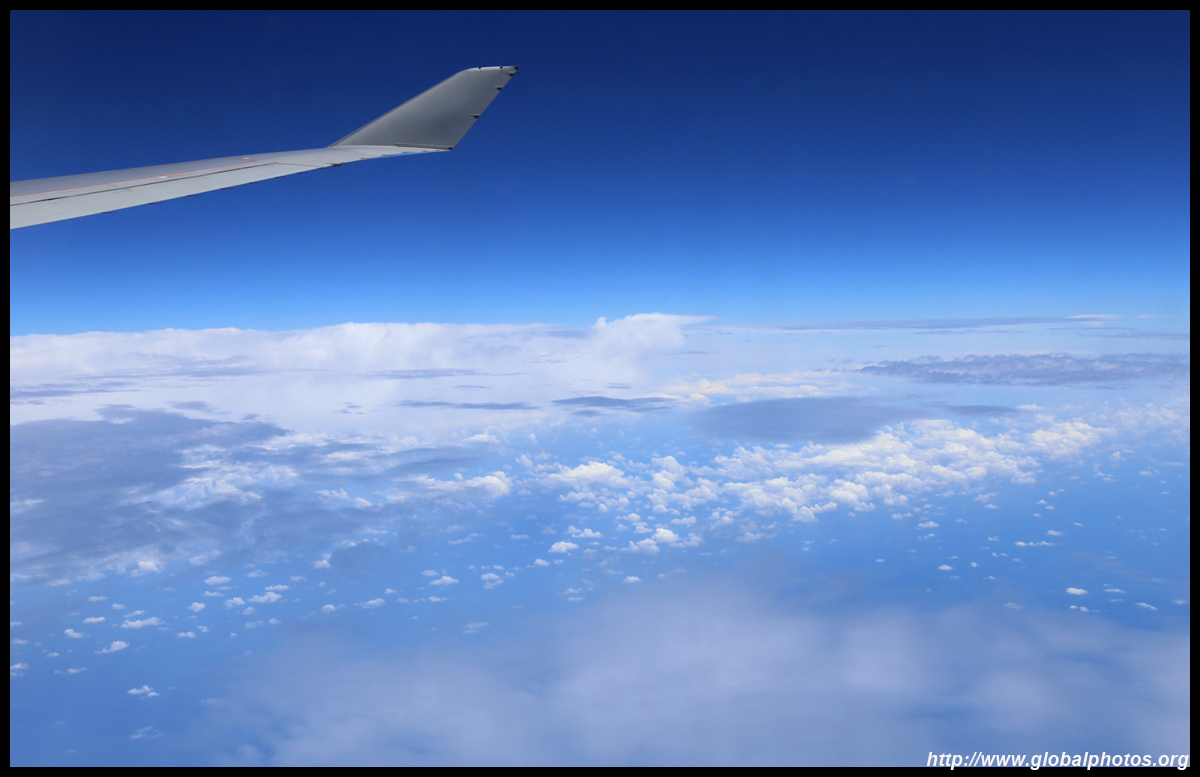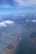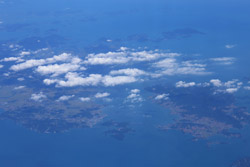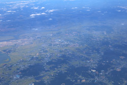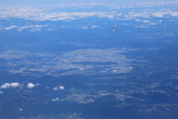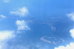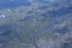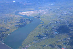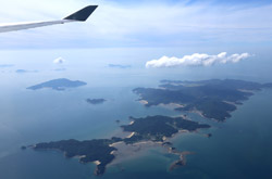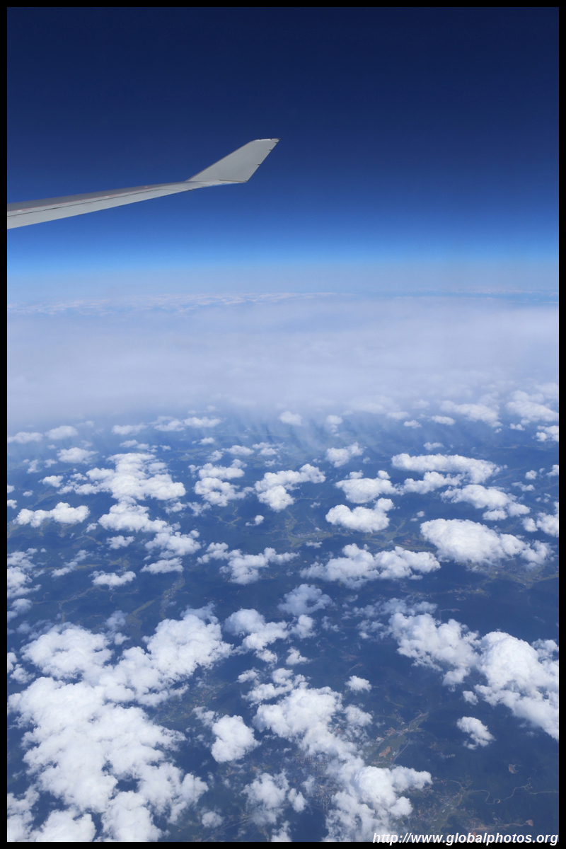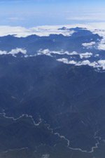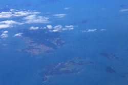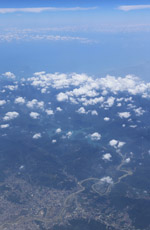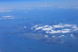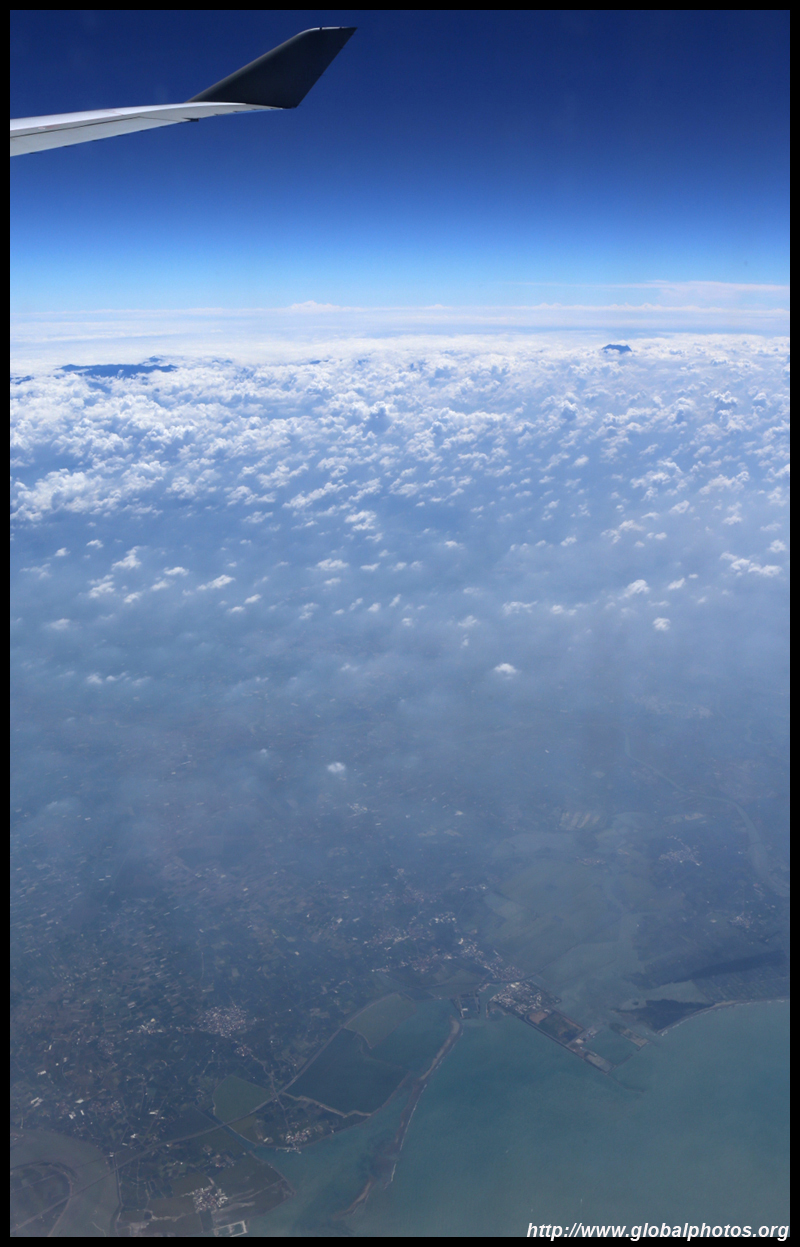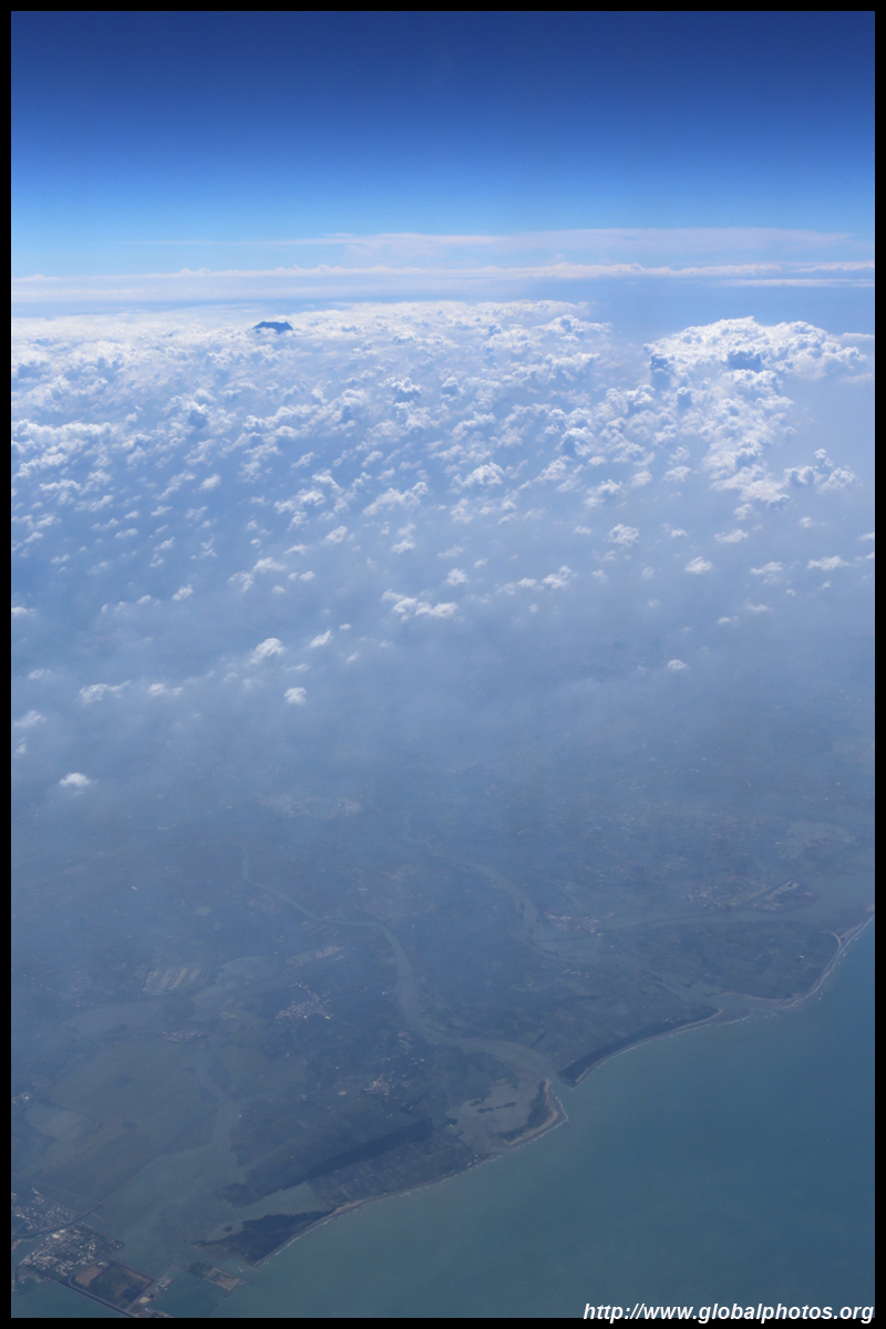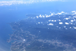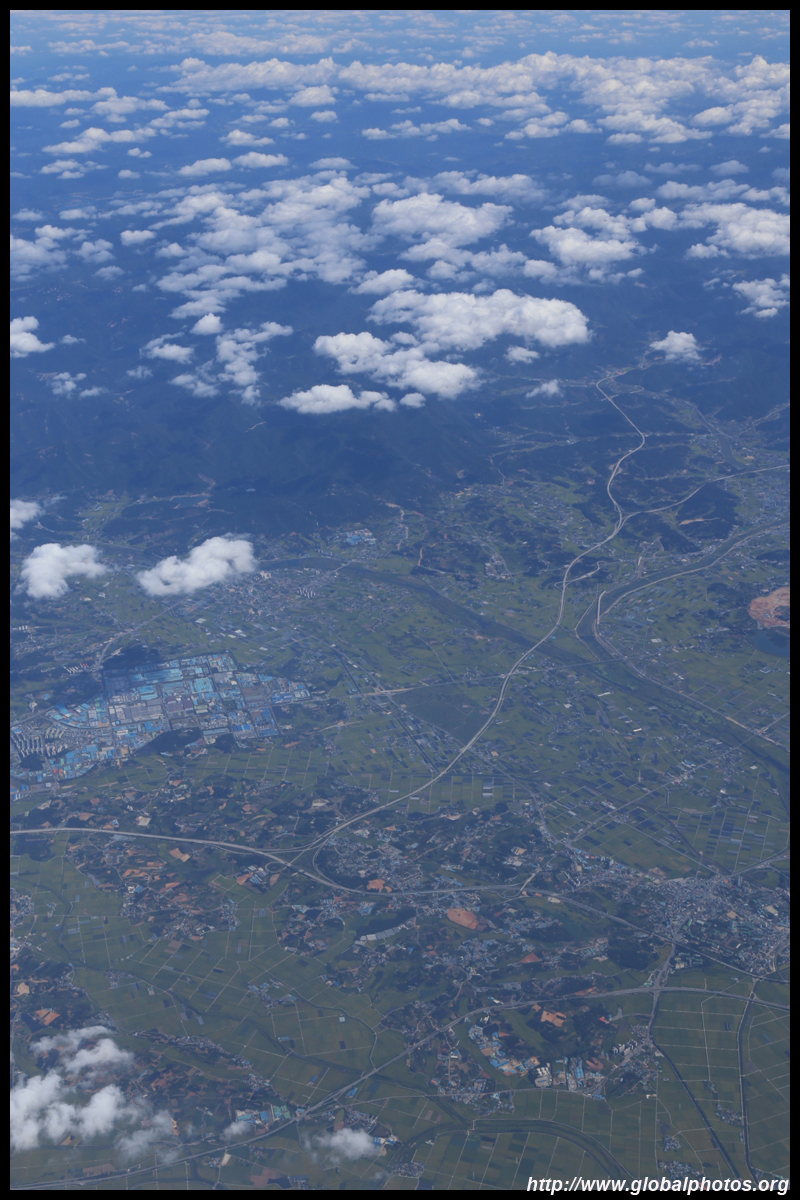I couldn't see Taipei today, and we headed across the blue, blue ocean after passing what appears to be Keelung in these photos. Seems my right window seat wasn't giving me much luck today.