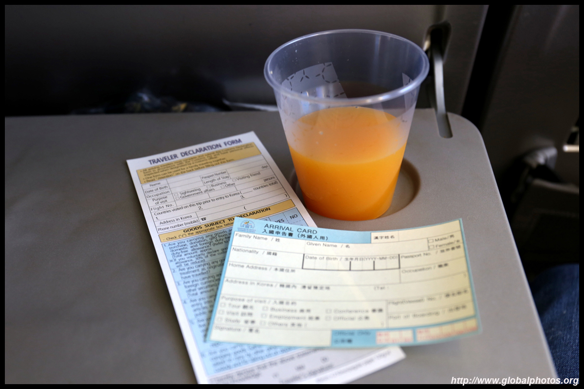 I have a long history of taking this flight to Seoul going back to 2007, but this time I am bumped to the back of the plane in cattle class. Nevertheless, the views on this trip were the best and not having a feast for a short flight wasn't such a big deal.