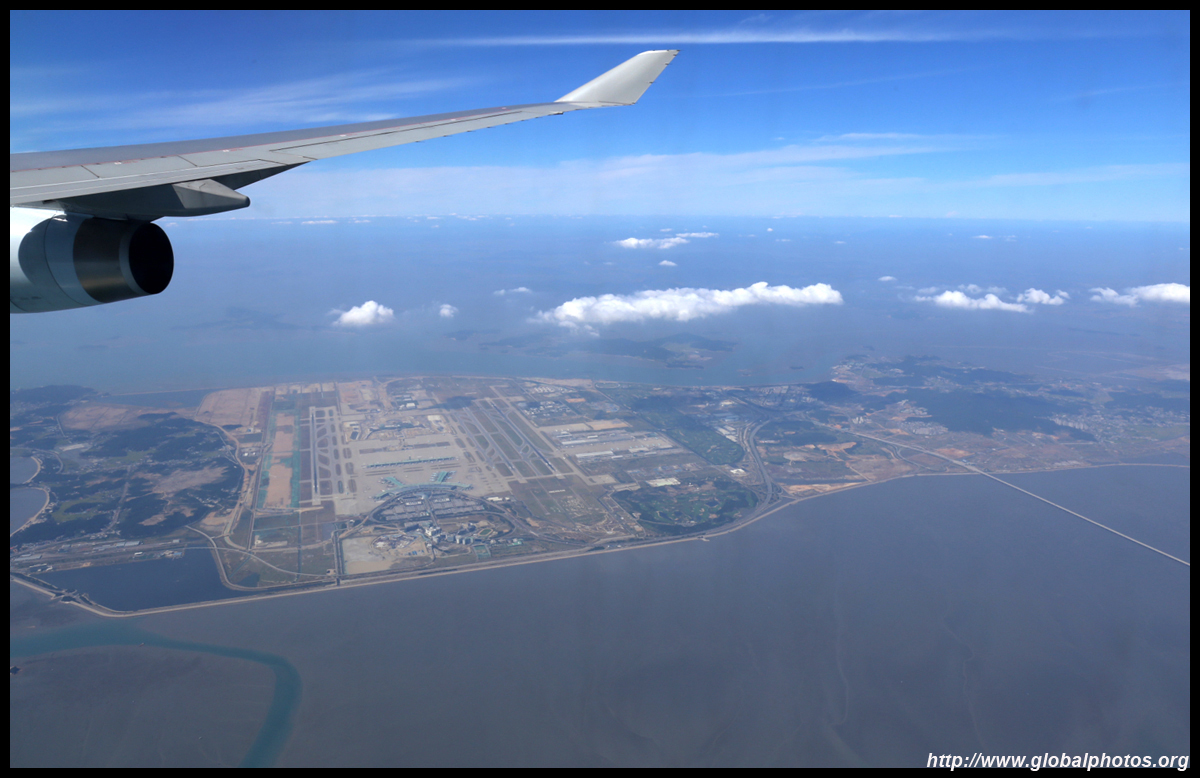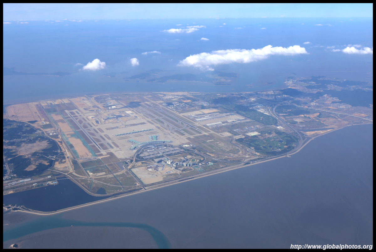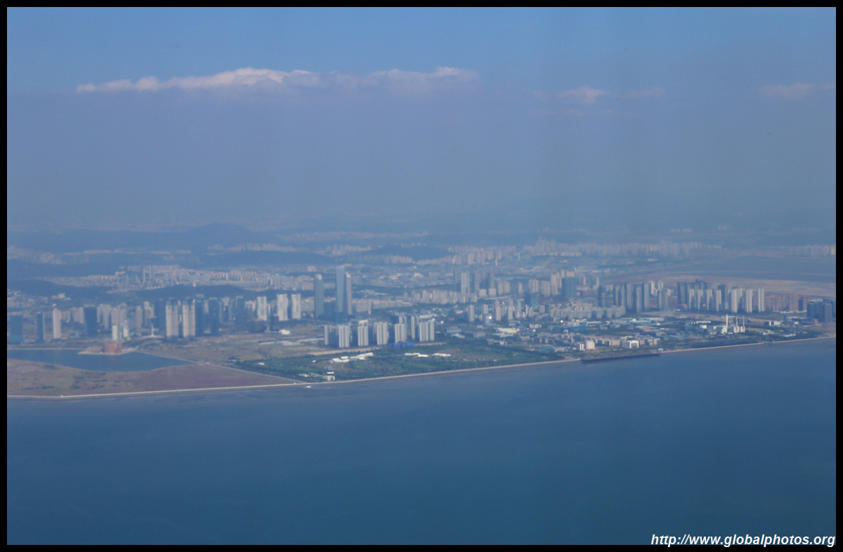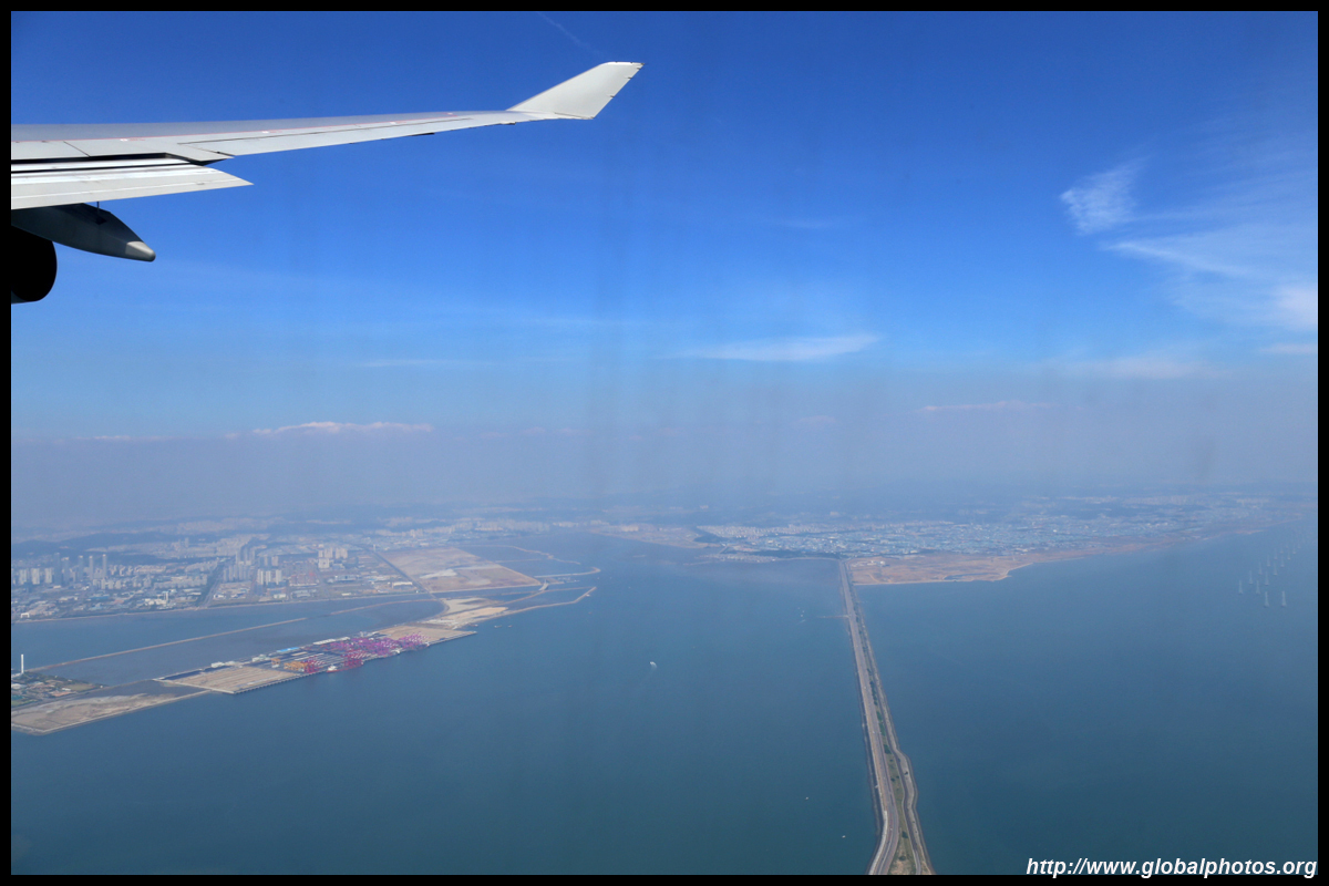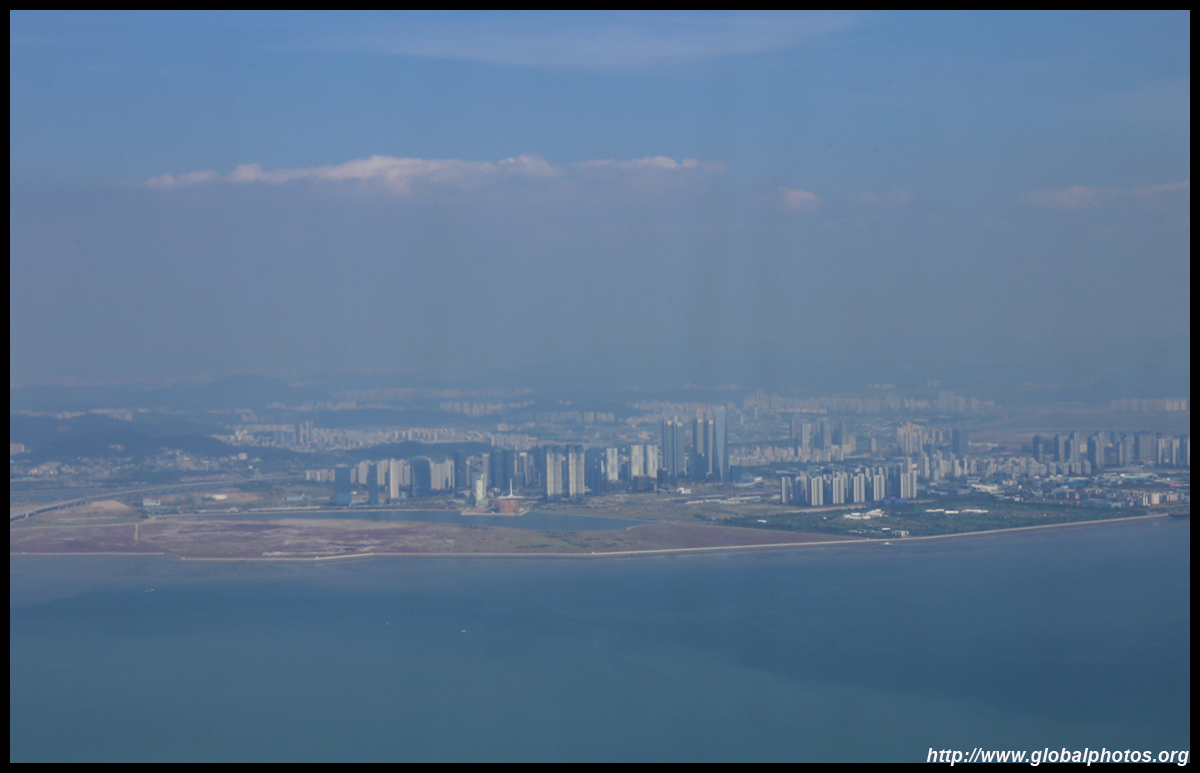 The flight path was a bit odd. We flew very near Incheon Airport before looping back out into the ocean and descending. I saw a plane took off towards us but at a much lower altitude. I guess they were changing landing directions.