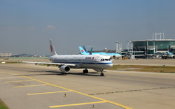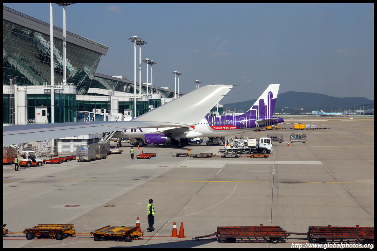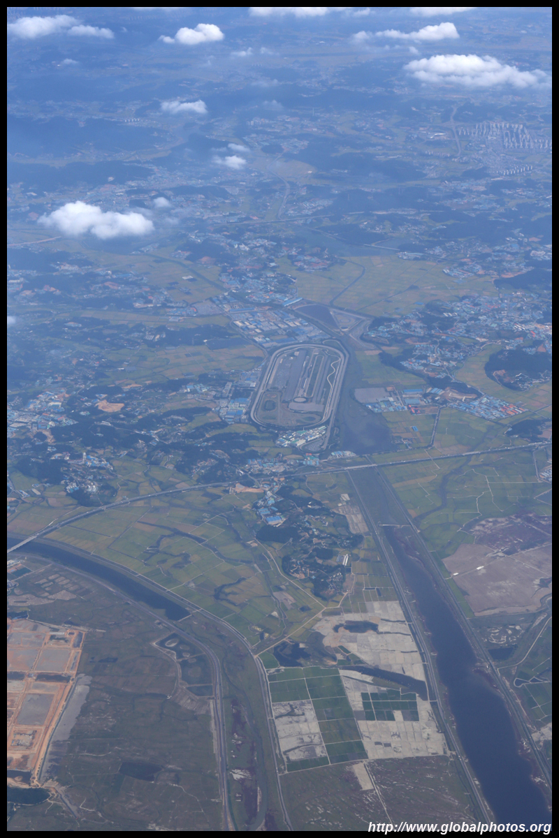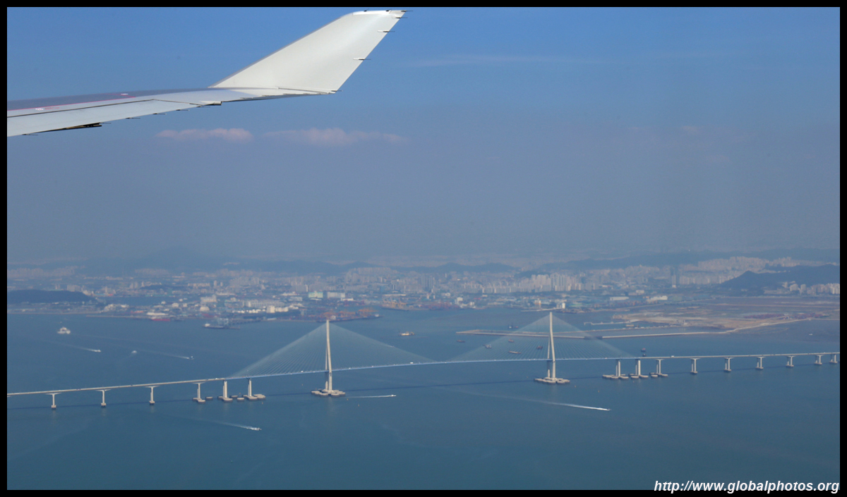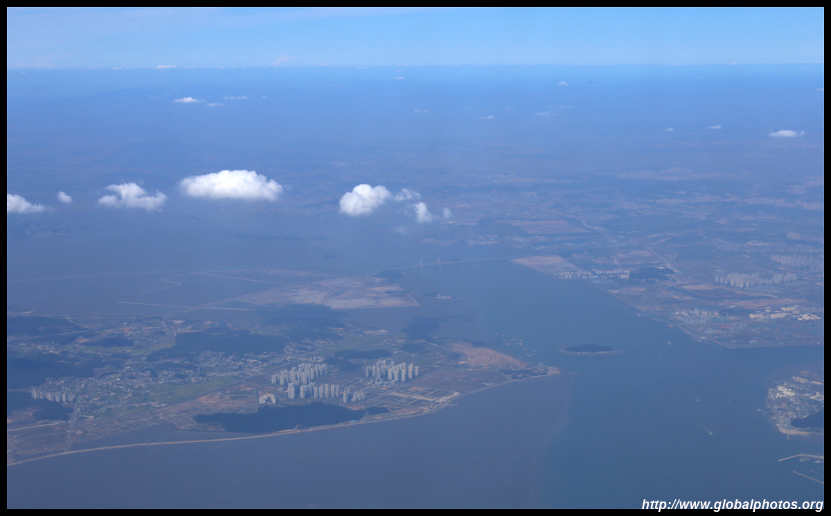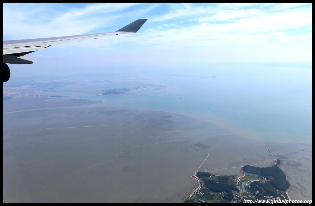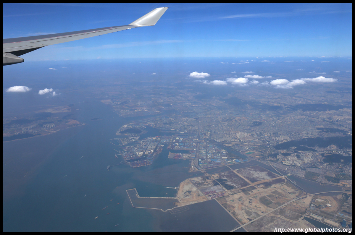The flight path was a bit odd. We flew very near Incheon Airport before looping back out into the ocean and descending. I saw a plane took off towards us but at a much lower altitude. I guess they were changing landing directions.