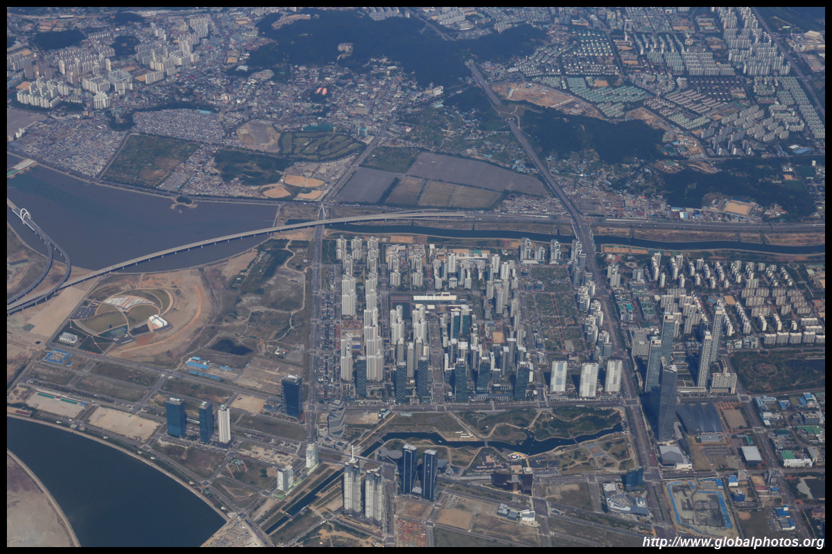 Songdo is a new development zone near Incheon, quite a distance from Seoul but reachable by subway. I had a walking tour a few years back and it was great to recognize the buildings again from the air.