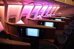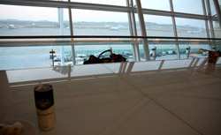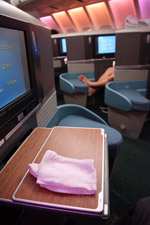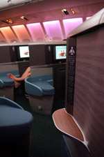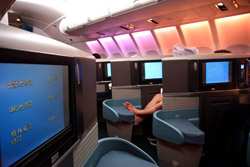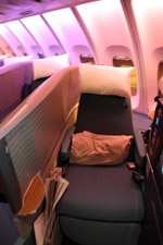 I had a full view of the airbridge after we landed. I didn't know why the rest of the upper deck seemed so anxious to get off the plane. I relaxed in my seat as the ground crew got all the equipment in place to receive us. I requested to stay behind to photograph this soon-to-be-outdated Business Class.