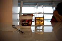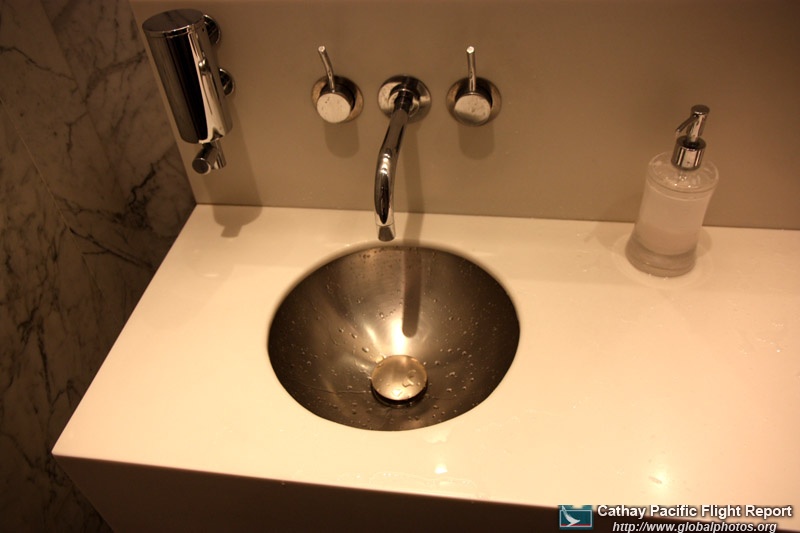 The interiors looked standardized from their older Hong Kong lounge. I was surprised to find how full it was, although I noticed when I did web check-in that J was nearly full today. There was food available, ranging from small sandwiches to salads and dim sum. The selection was acceptable, although I've come to realize I shouldn't expect a buffet-style restaurant awaiting me.
