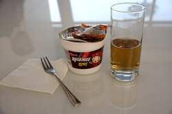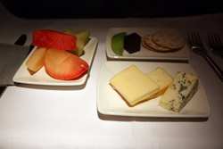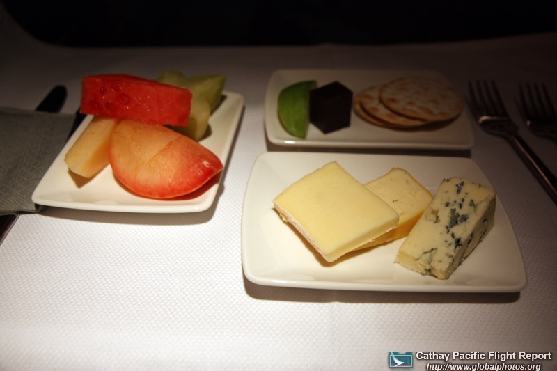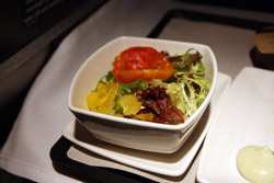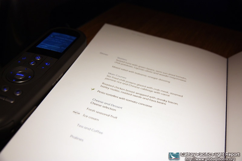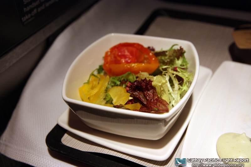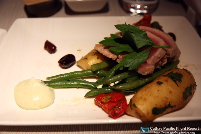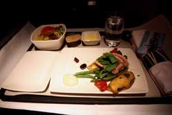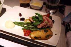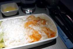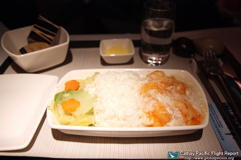 Dinner was served shortly after take-off. The seared tuna tasted really good and I picked the spicy shrimp and crab main dish.