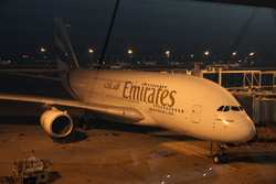 At the same time, an Emirates A380 was also parked at the satellite terminal.
