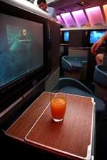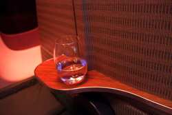 I settled into my upper deck seat with a welcome drink on hand. The herringbone configuration meant that it was hard to access the window, and the shoulder strap could not buckle tightly as they've made it lighter and more flexible. Good that these seats are going away. Although the lie-flat function is nice, there was less lateral space than the old Business Class seats.