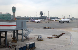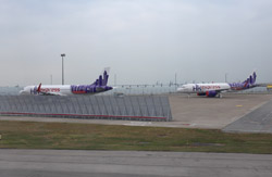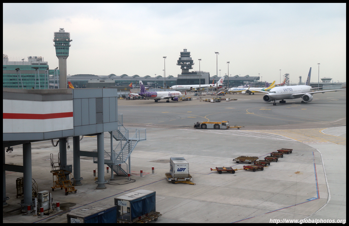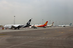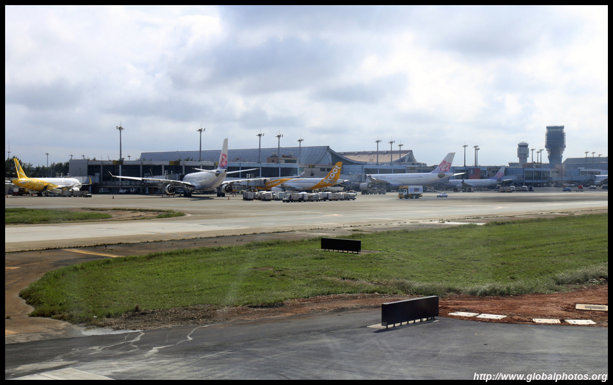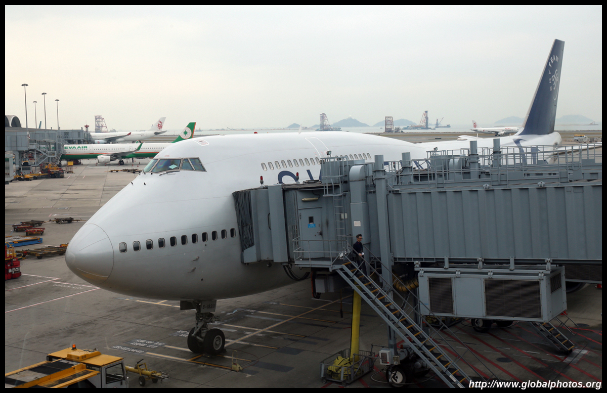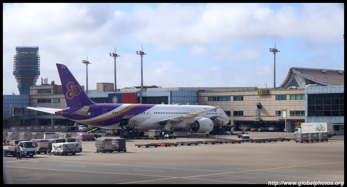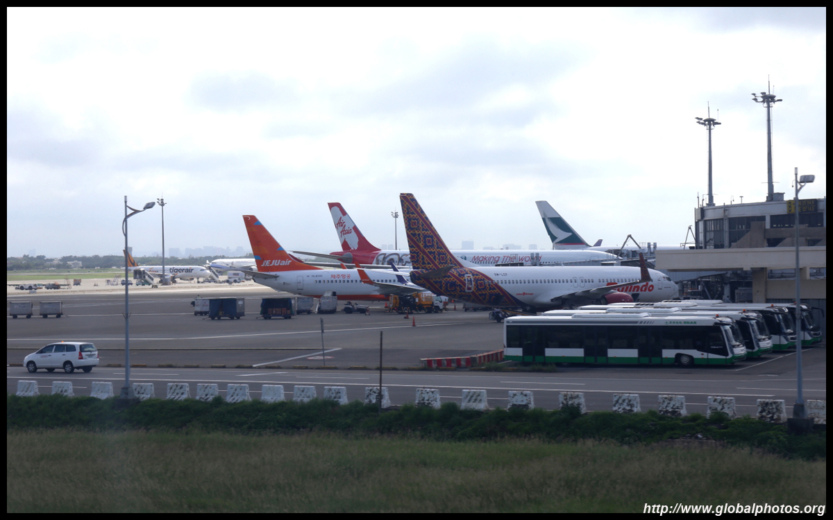 New automated kiosks have appeared to speed up the process of going airside. However, nobody was giving it a try and my attempt was unsuccessful, eventually ending up at the manual counter again. Security lines were longer than usual, although it didn't take that long to get through all the formalities. Air-side, plane spotting was great as usual. My first one captured the new EVA Dreamliner just taking off.