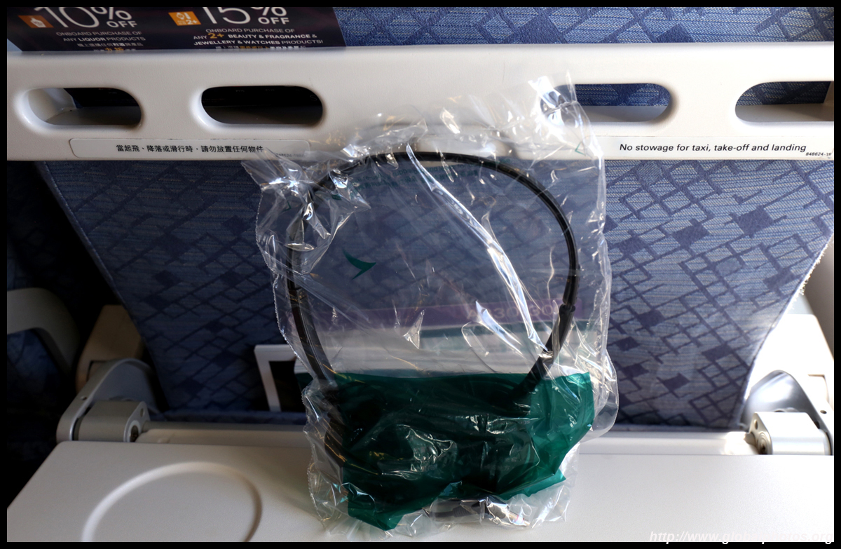 With little to see outside the plane, I turned my attention to the various amenities on this short flight - not even 90 minutes. A packaged headphone was already in the seat when I boarded, which is something that normally costs money for North American flights of this length, even transborder ones.