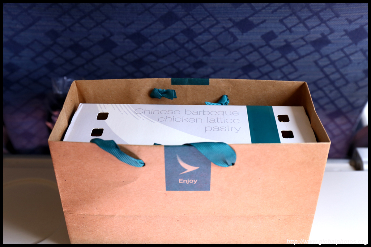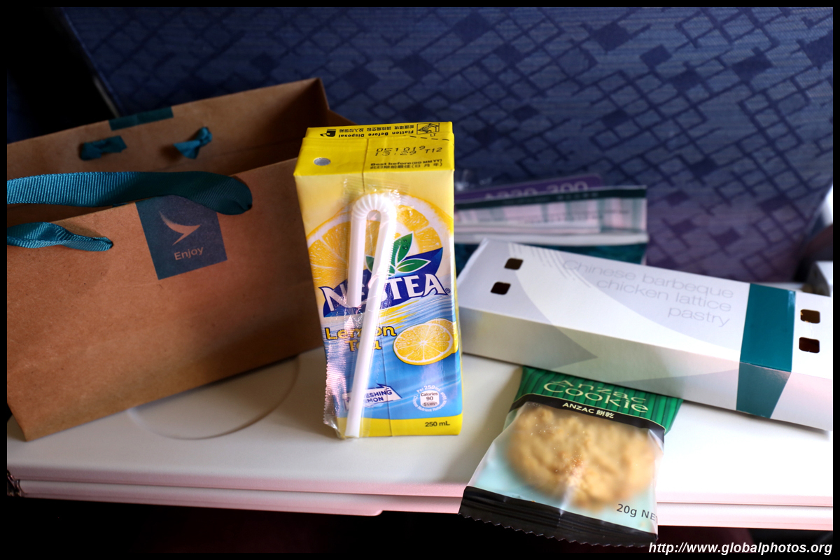 A free meal was also served, although it was not a hot rice dish as I had thought. There was a news item noting Cathay was moving away from sandwiches for their lunch and dinner departures, but I still got a warm sandwich. The cookie was the highlight though. To save time, a tetra pack was already in the bag, and there was no separate drinks cart service.