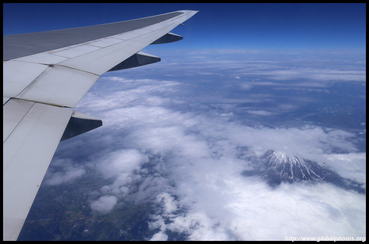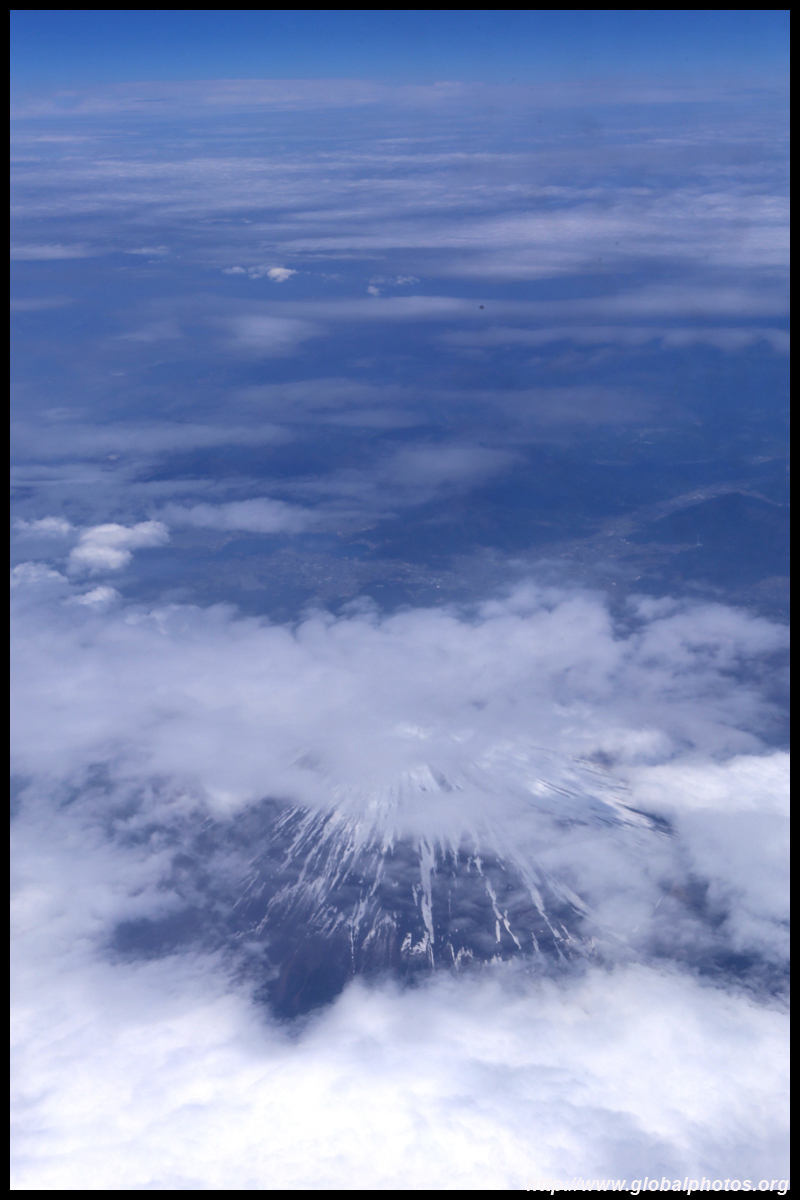 I chose the right window to get decent aerials of Japan upon departure. Mount Fuji soon came into view, shrouded by clouds but the snow-capped top was still visible. Mornings remained cool in Tokyo so it was not yet T-shirt weather.