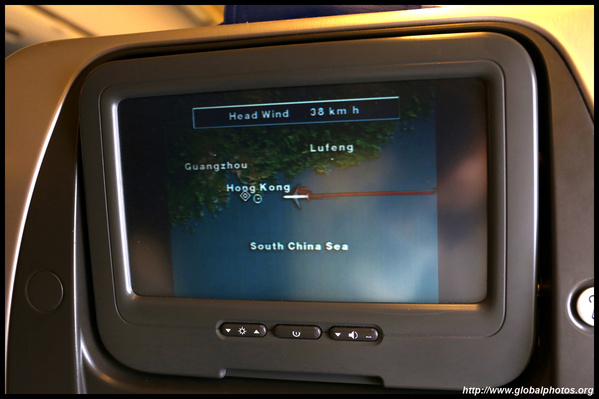 The flight was generally smooth with a few mild bumps here and there. As we approached Hong Kong, the captain came back to update us on the arrival time. If we were making a straight approach, the earliest we could arrive would be 3:05, still a very decent time, but due to bad weather, we would hold for 30 minutes and eventually arrived an hour late at a remote stand.
