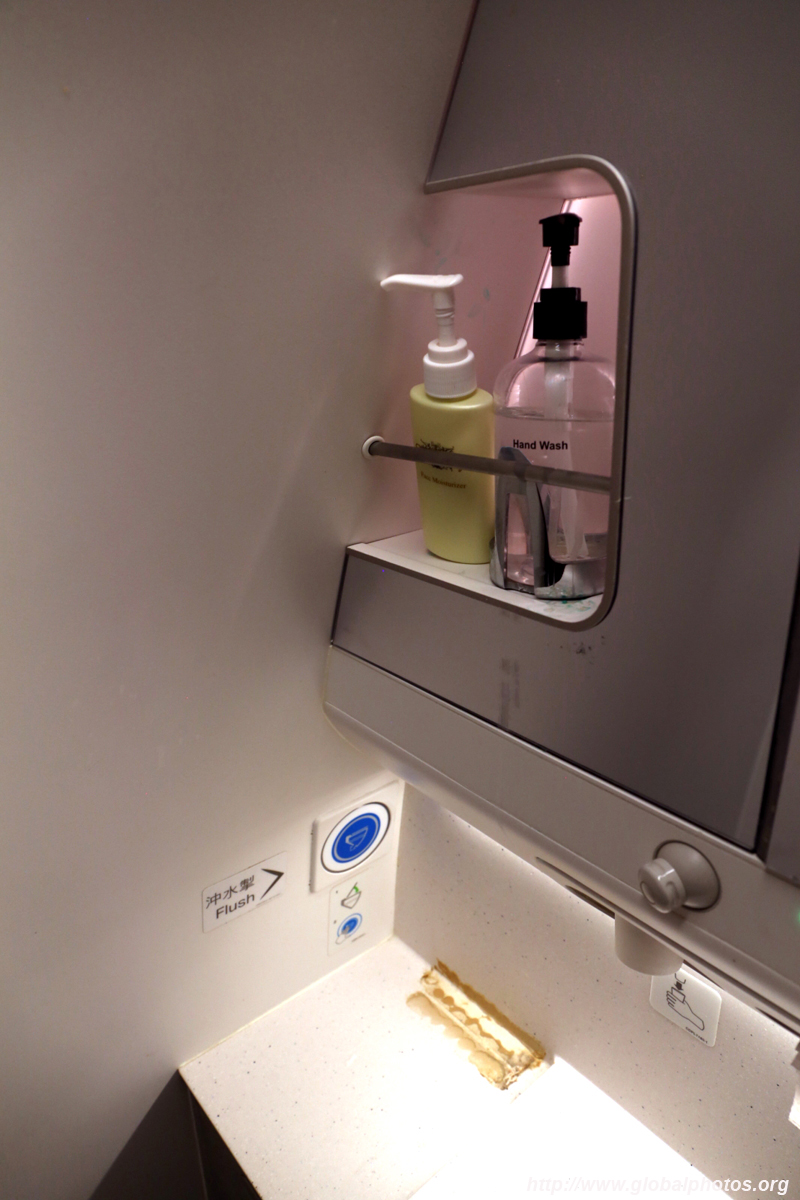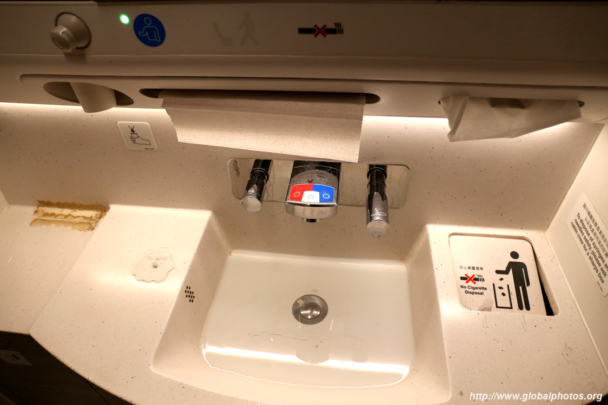 With the previous flight being full, I did not have a chance to do a grand tour of the lavatory. It was stocked sufficiently and the basin was noticeably wider but shallower.
