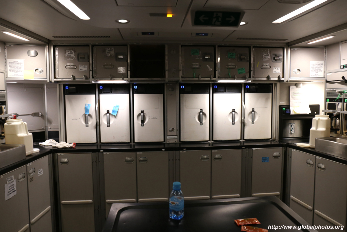 The rear galley had plenty of closet space to feed a full load of passengers on a long-haul flight.