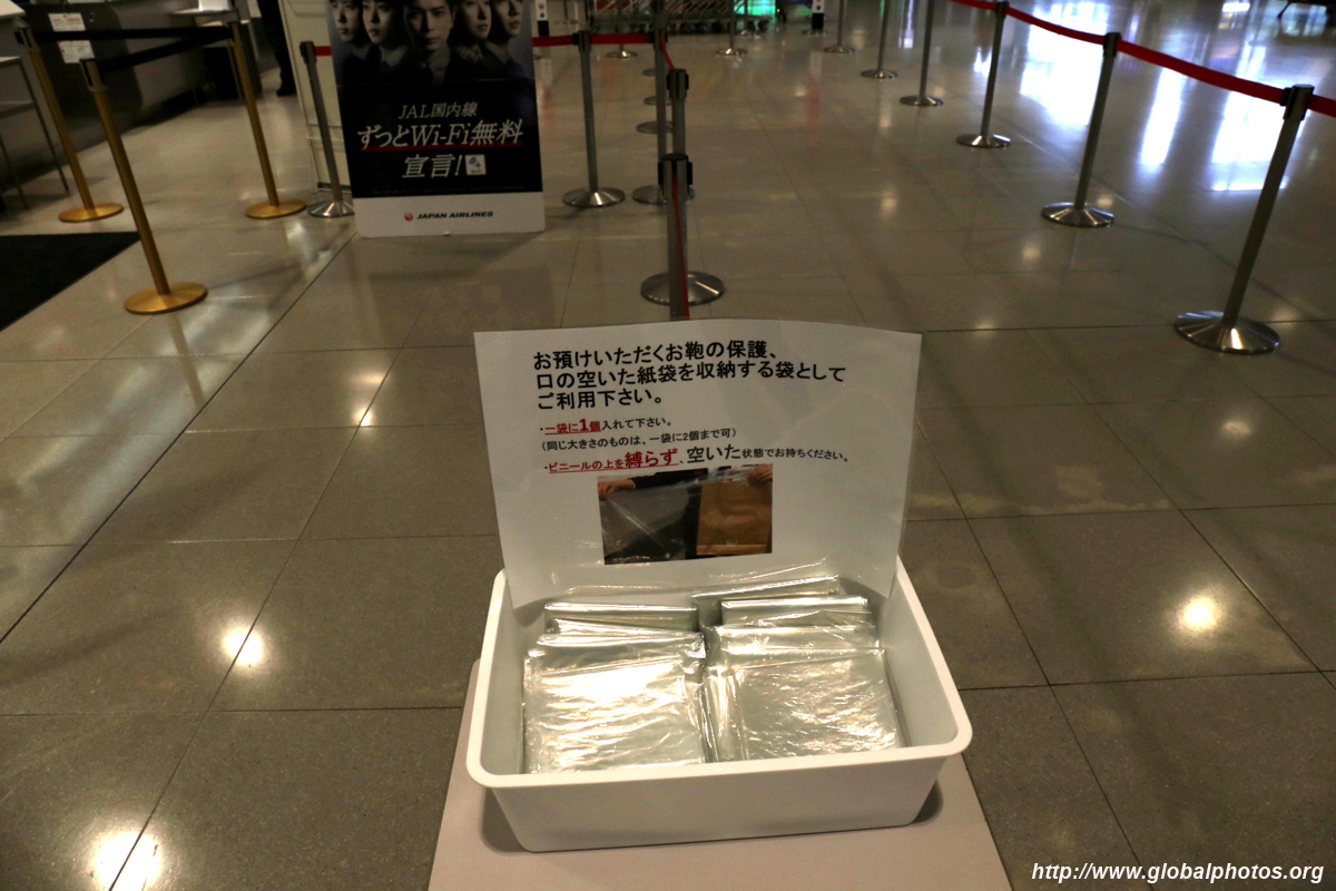 The domestic check-in area was darker with no natural skylights. ANA has an interesting board which screams the traditional way of flying - glamorous and fun. JAL even had clear plastic bags at the check-in area for your liquids.