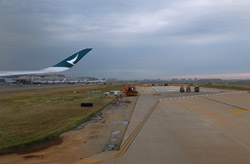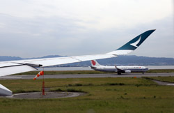 The international check-in area is airy and spacious. Some machines have appeared to reduce the human interaction. There were no crowds at Cathay's check-in counters. After all, it was 3 hours from departure time. I first went to the kiosk to check if I could change to an exit row seat on the map, but ultimately settled with my original seat taken during online check-in.