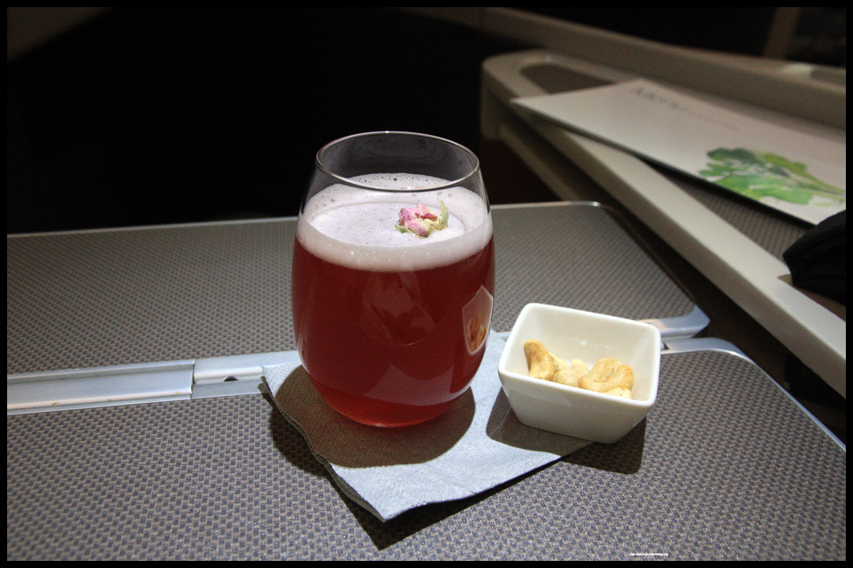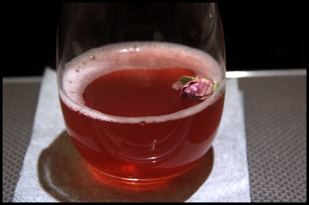 The standard introductory drinks were served by crew with a smile. Strangely, we took off into the night with the cabin lights on full blast.