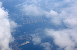 The skies were not too nice to take aerials of the skyline. I had the correct window seat, but I cannot control the weather.