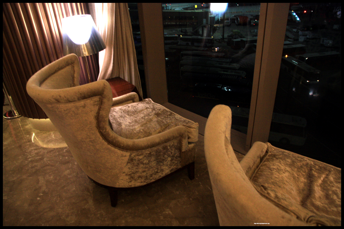 The airport lounge was a bit quieter than my previous visit. I got a drink and went to the far end where there was an empty room and enjoyed views of the tarmac.