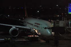 Tonight's flight would take less than 5.5 hours. Soon, the captain came back and announced we would be descending. We landed earlier than schedule, although taxi in took quite some time.