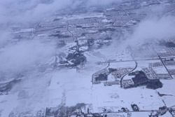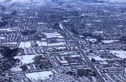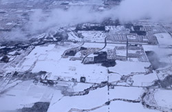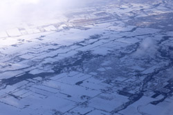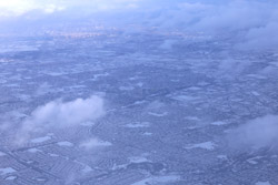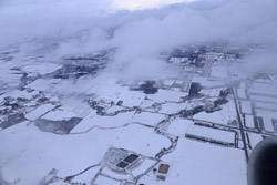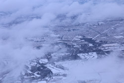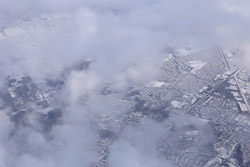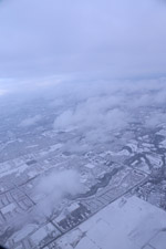 I didn't want to spoil a sumptuous meal on board, so I kept the pickings modest and went to the windows to see a cloudy Mississauga behind my plane. The lounge needed vacuuming as well.