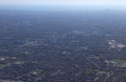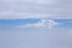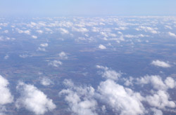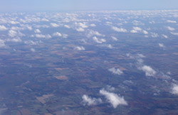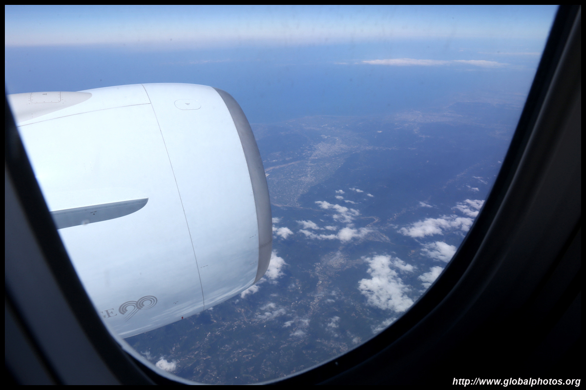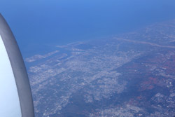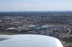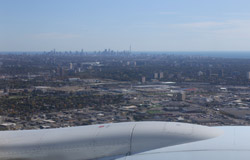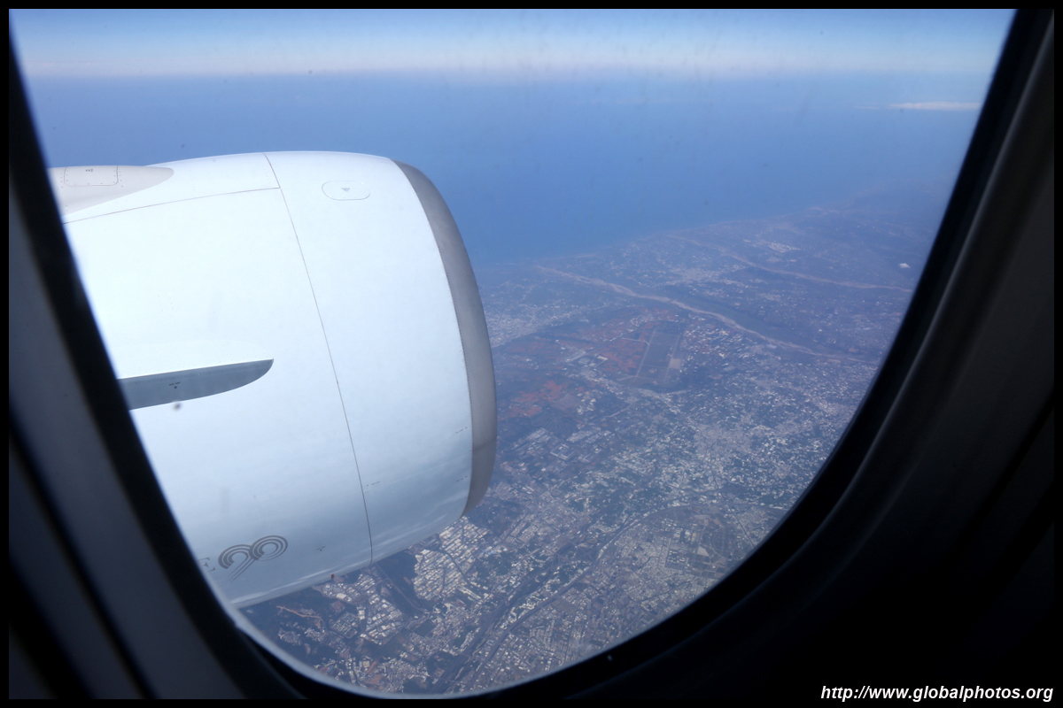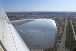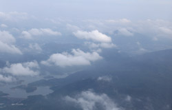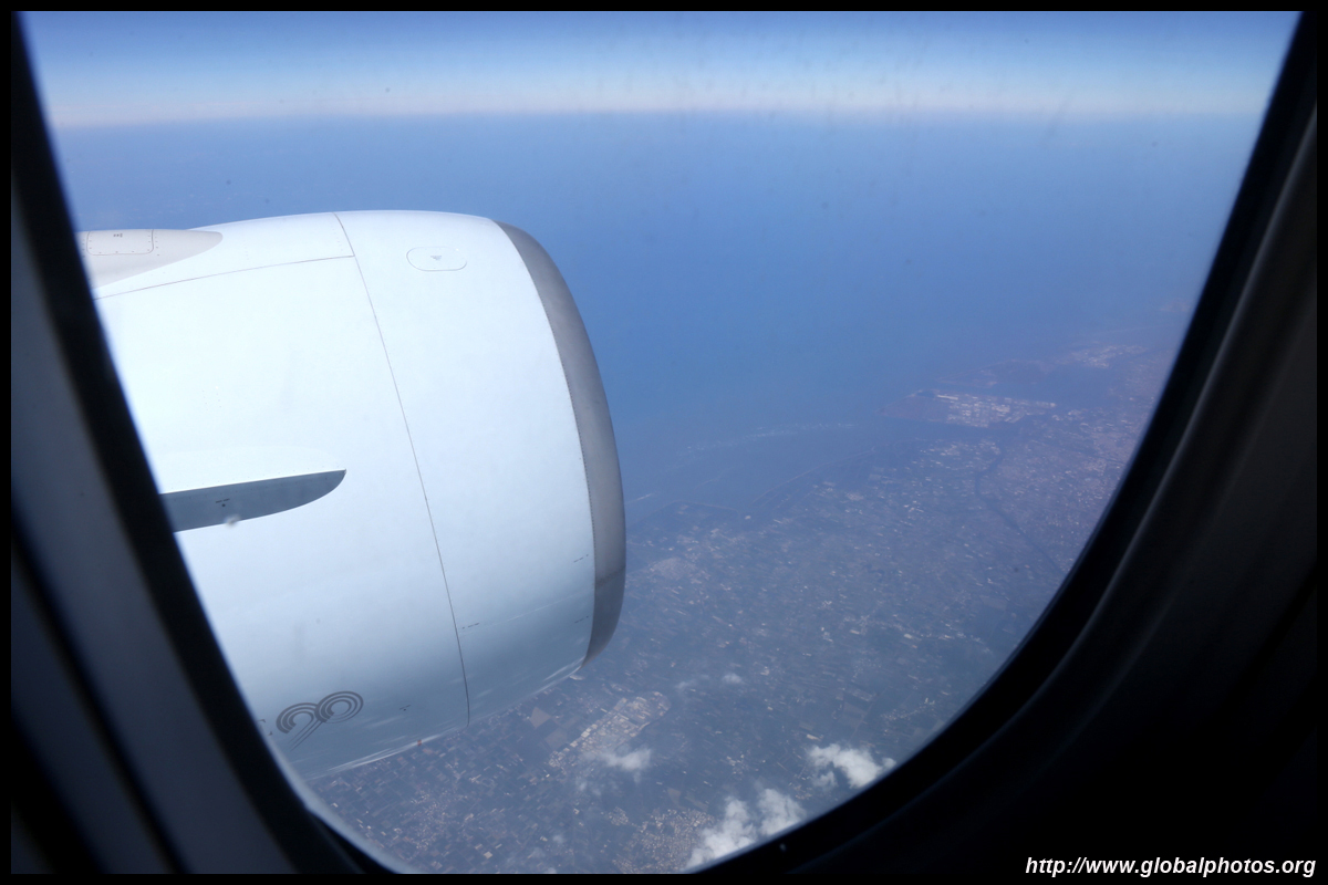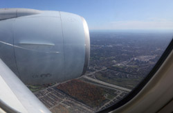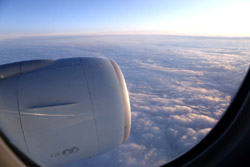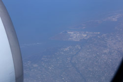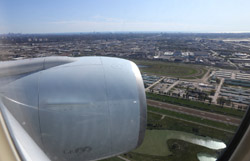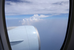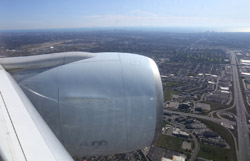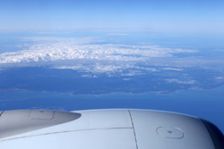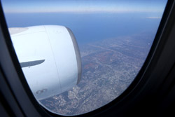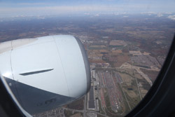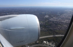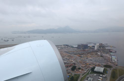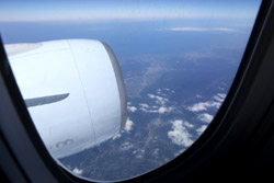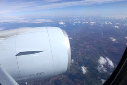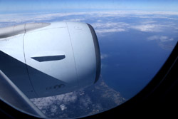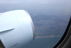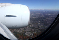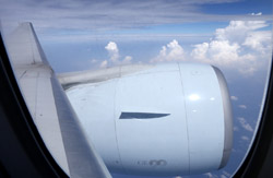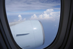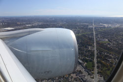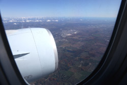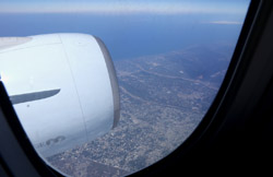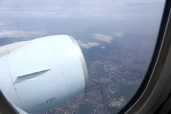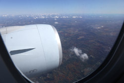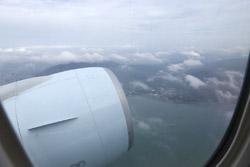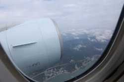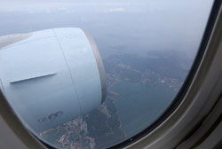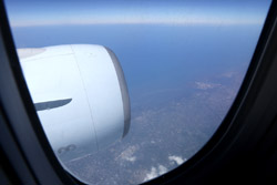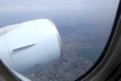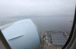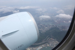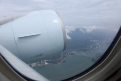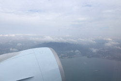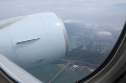 We didn't have to wait in line for long to take off. However, the cloudy weather as well as the engine got in the way of my aerial shots.