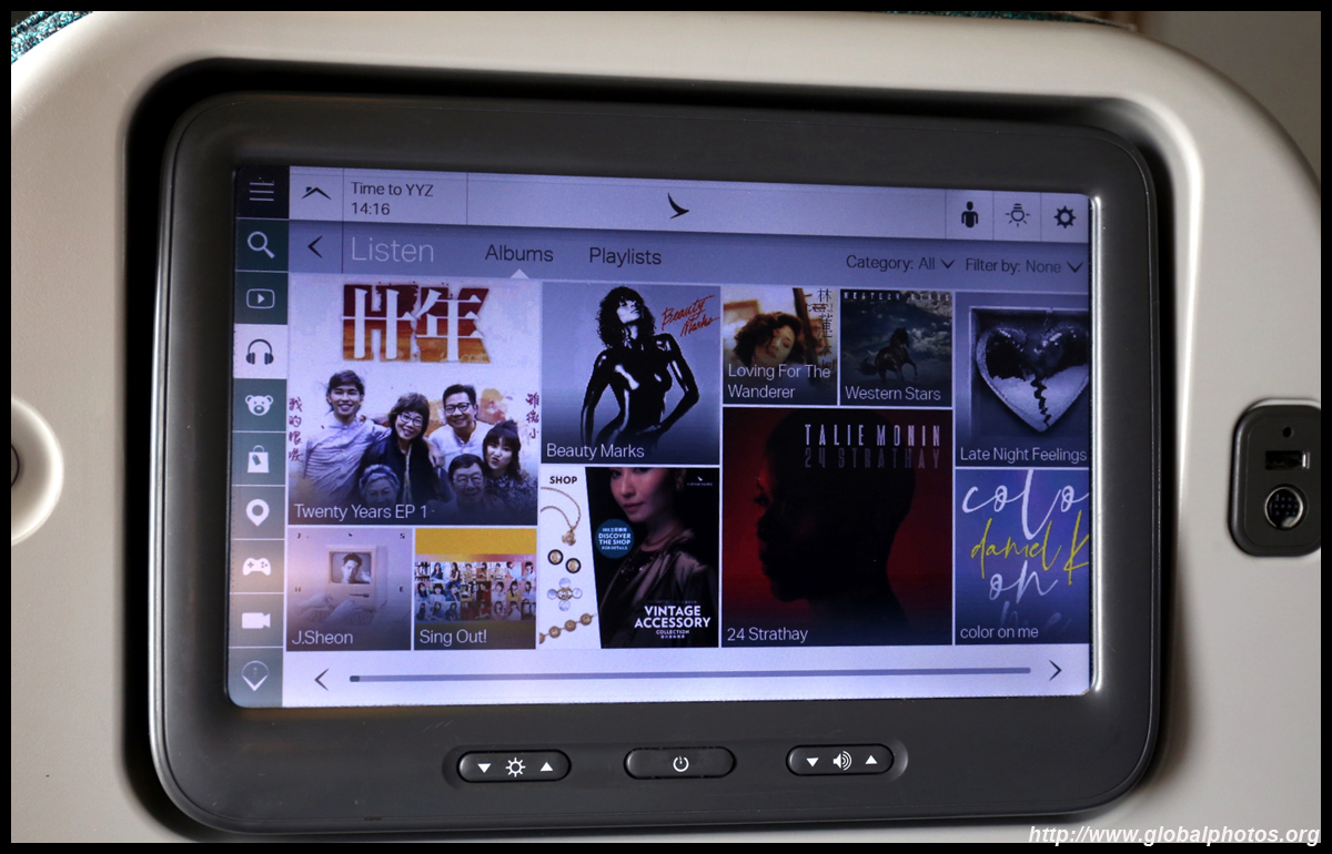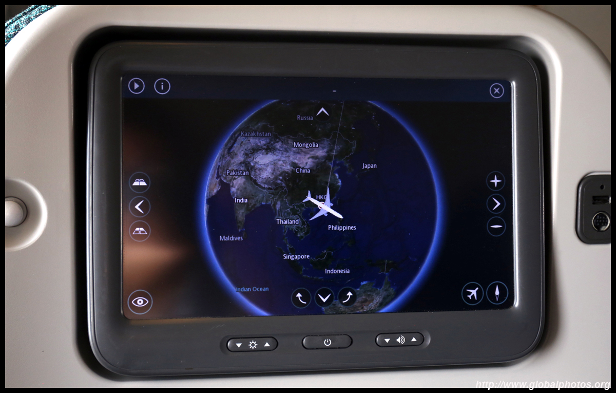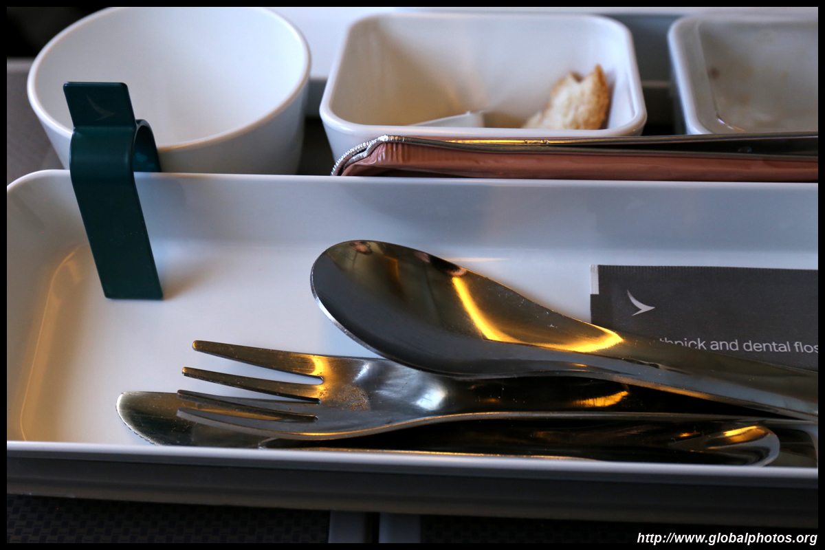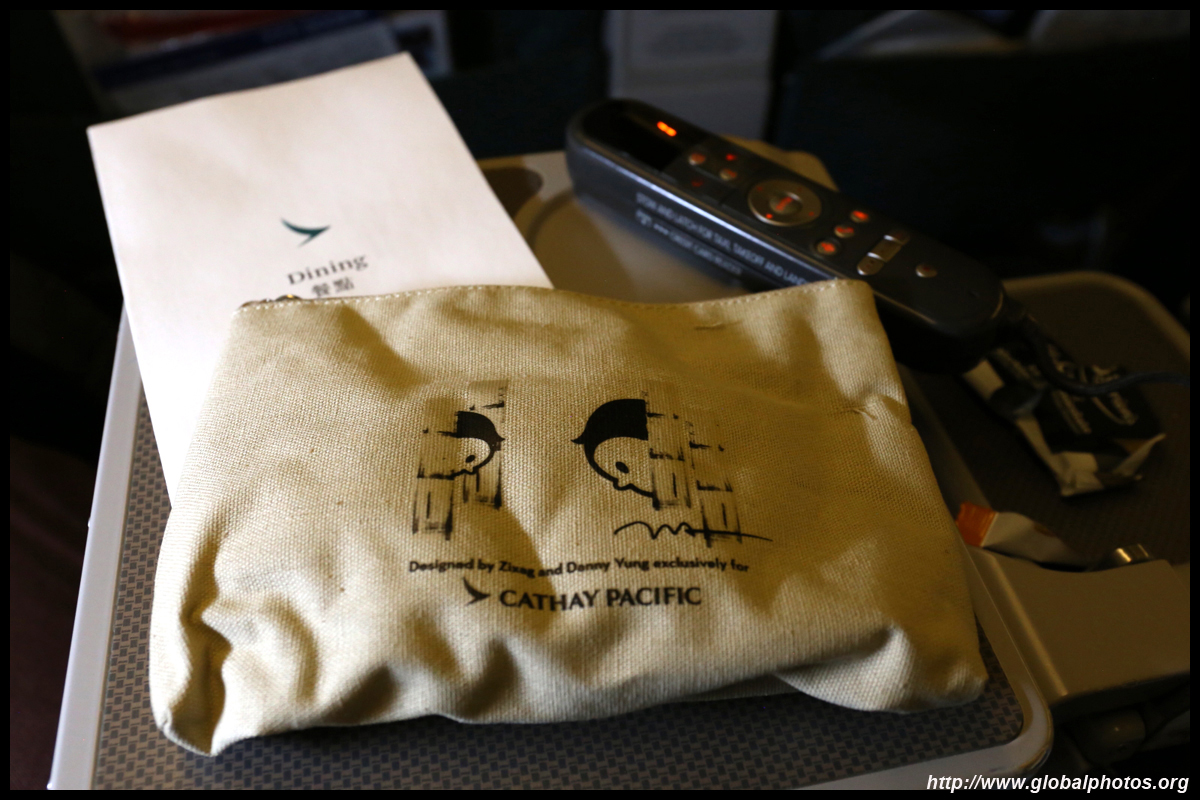 The crew came around a few times to distribute various items : the welcome drink, menu, amenity kit, and menu again. This is my first time flying Cathay's Premium Economy product, which looked similar to the regional Business Class. The seat felt noticeably wider and there was more armrest space for each passenger. With Business being astronomically costly for a revenue ticket, this was a happy compromise with sufficient space to do some work on your laptop and not having to worry about bumping your knees onto the seat ahead of you during the long flight.