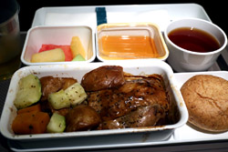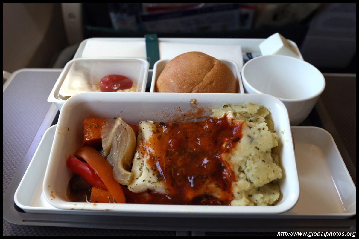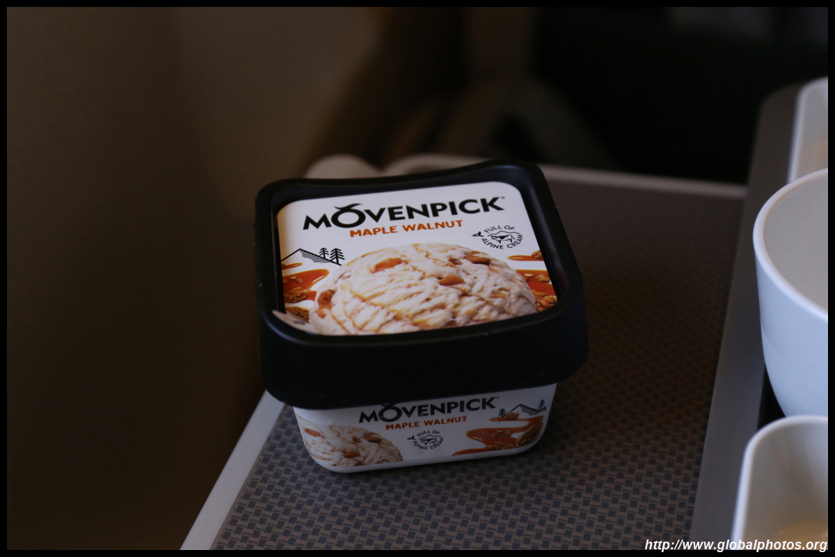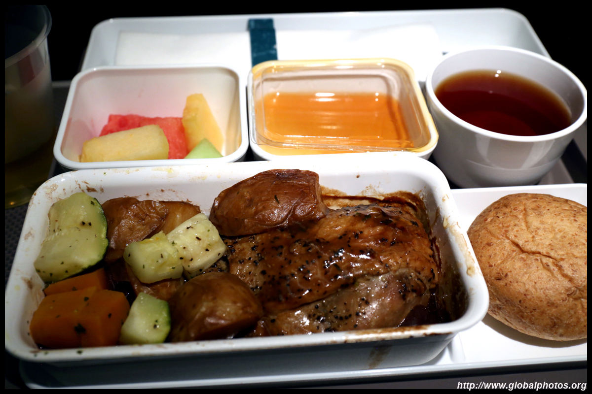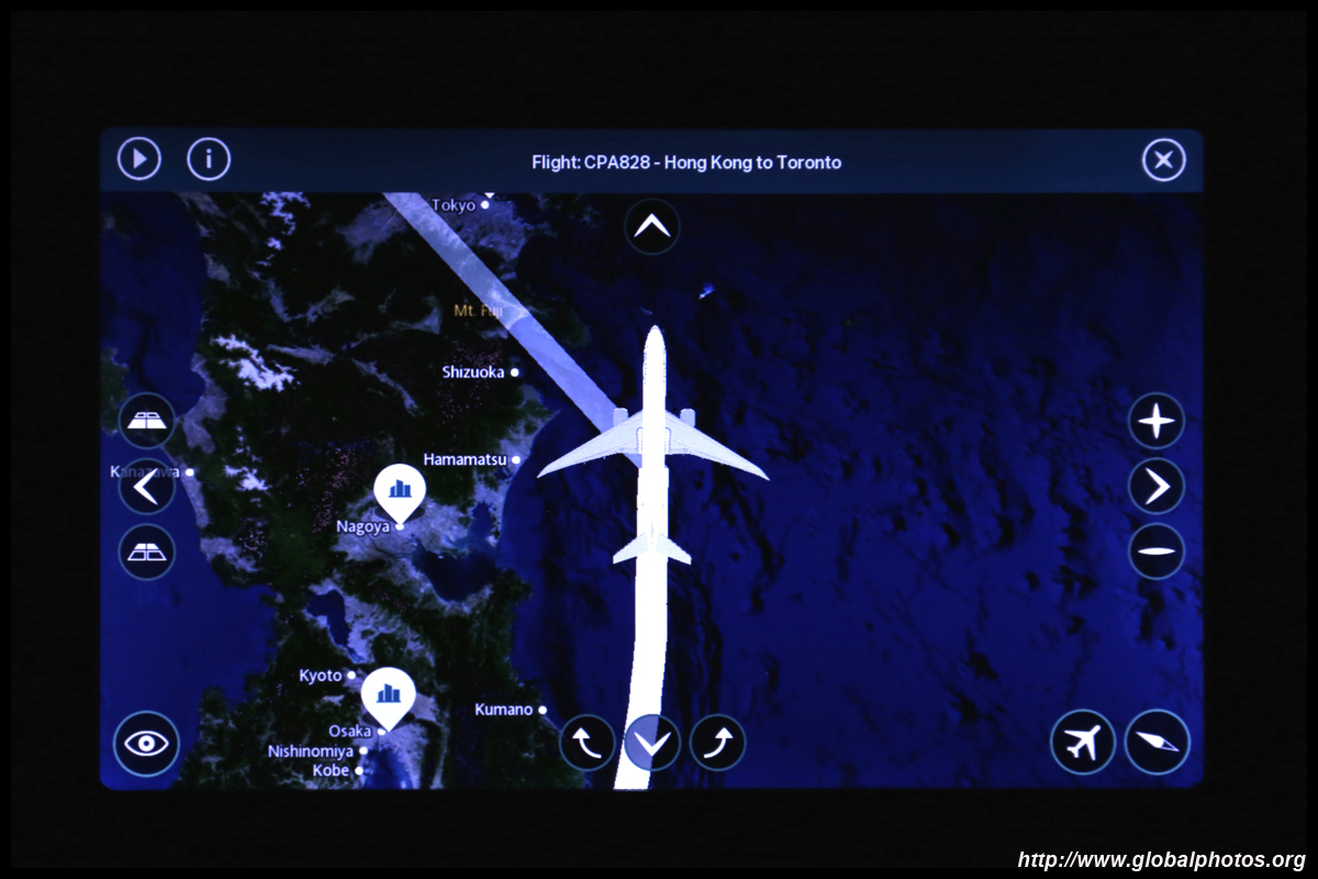 The crew came around a few times to distribute various items : the welcome drink, menu, amenity kit, and menu again. This is my first time flying Cathay's Premium Economy product, which looked similar to the regional Business Class. The seat felt noticeably wider and there was more armrest space for each passenger. With Business being astronomically costly for a revenue ticket, this was a happy compromise with sufficient space to do some work on your laptop and not having to worry about bumping your knees onto the seat ahead of you during the long flight.