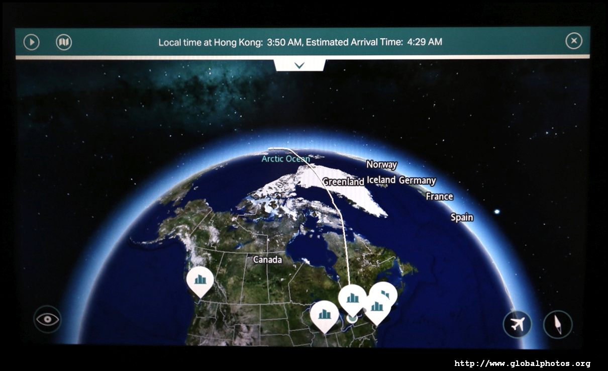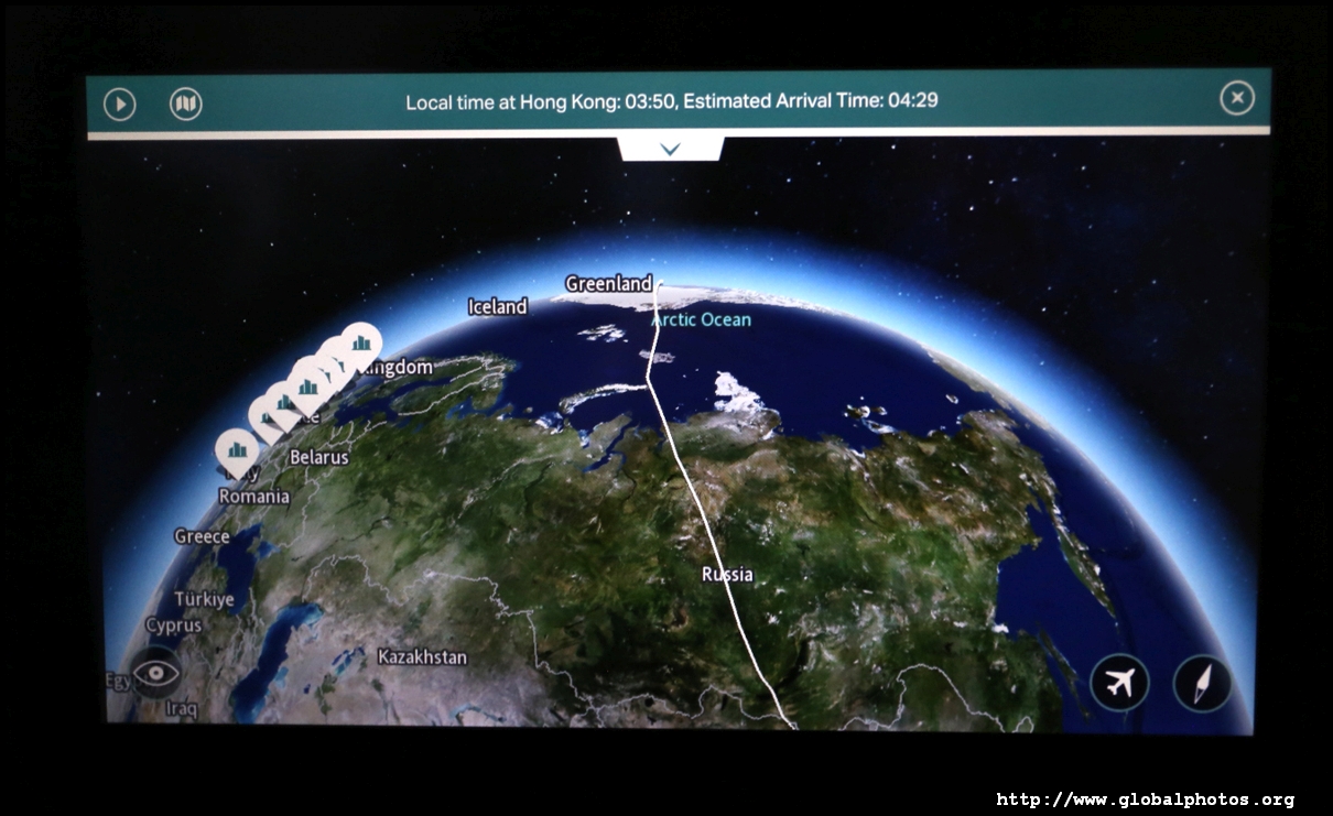 We headed northeast and passed through northern Greenland on the way to the North Pole. This route is one of very flew from Cathay that will fly through Russian airspace on the other side of the arctic. When I booked this flight back in late October, the flight time was much longer because it avoided Russia, but subsequently, they decided to resume flying over their airspace, saving a few hours. I suppose Russia is friends with China so wouldn't try to do anything funny to this flight from an enemy country.