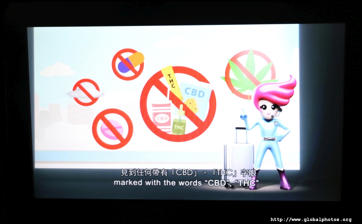 As we approached the end of the flight, a government video was played warning about bringing CBD products in since it's now illegal.