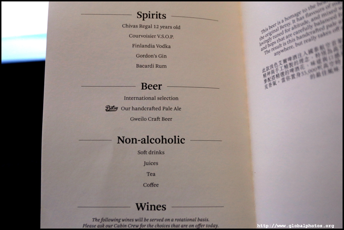 I thought of trying Betsy, Cathay's own brew, but worried alcohol at altitude would exacerbate its effects. The port wine has disappeared from the menu.