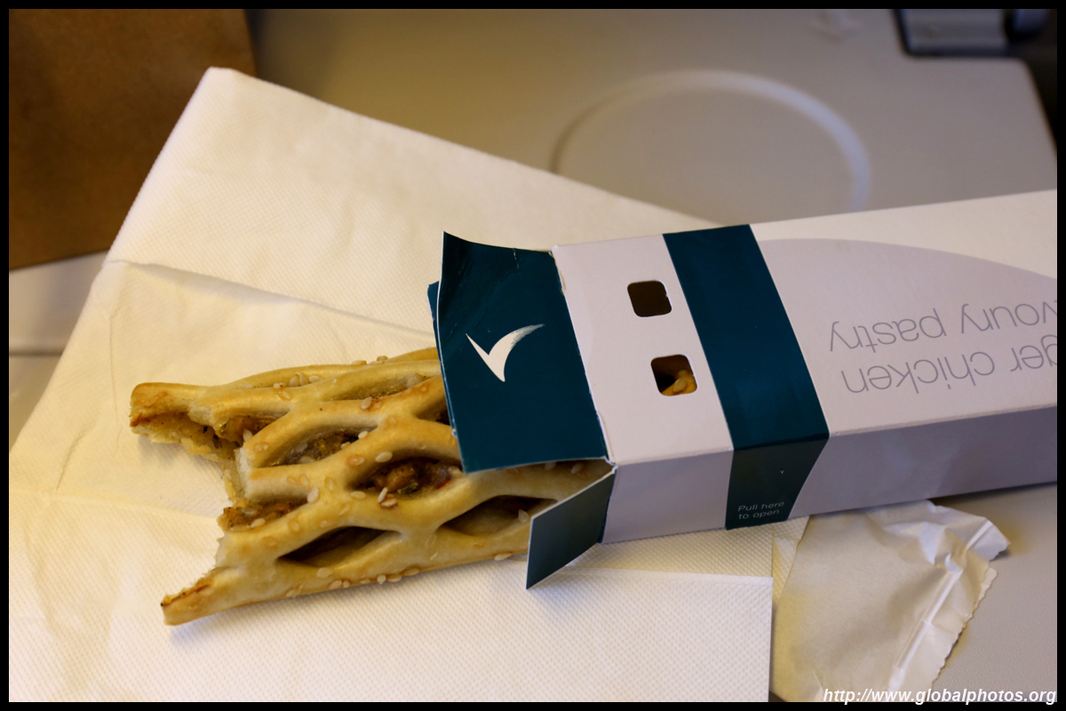 Soon after the seat belt sign was turned off, we were served hot sandwiches with a cookie and mango juice in small bags. This is a remarkable improvement from the pizza sandwich-like substance I got on my last flight to Manila in 2009. The sandwich was not bad at all.
