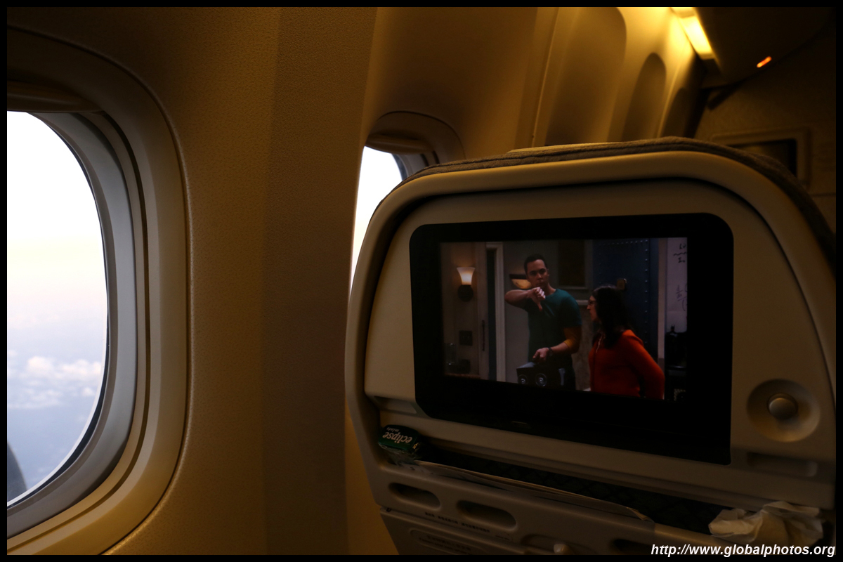 After a few shows, we were ready to descend. About 40 minutes from arrival, the flight deck announced they are putting on the seat belt sign early as there was a line of weather up ahead they are trying to avoid. Sure enough, there was a lot of lightning in the distance.