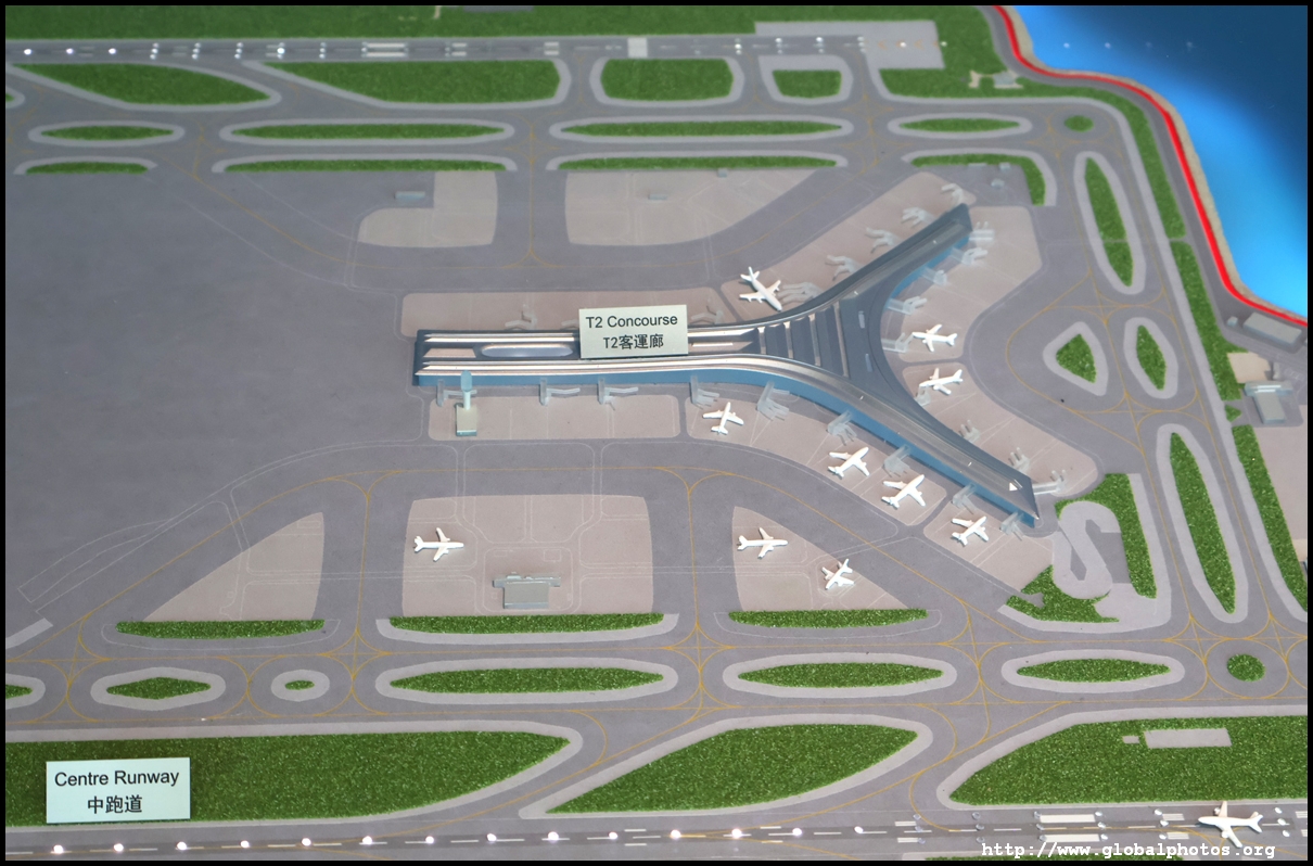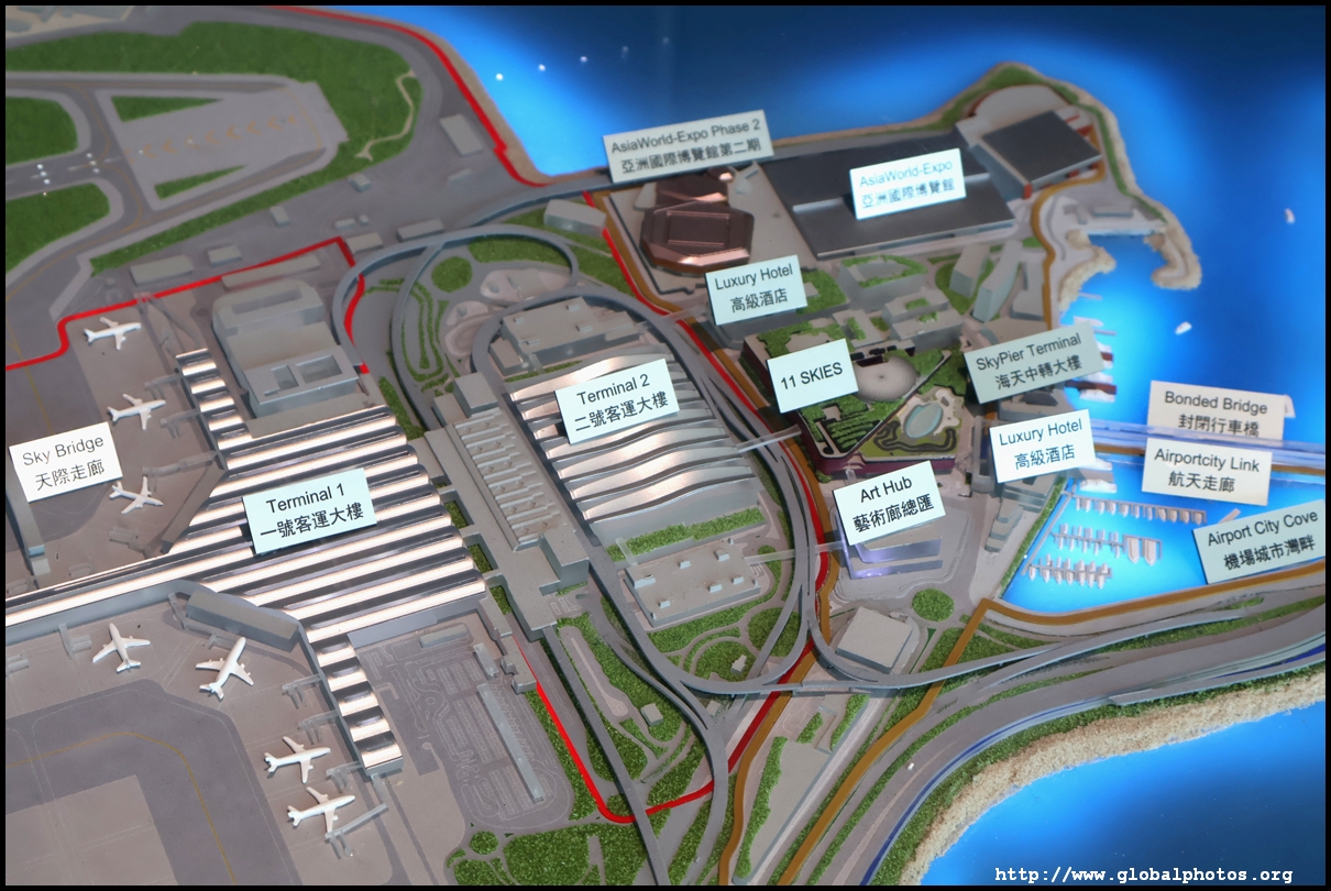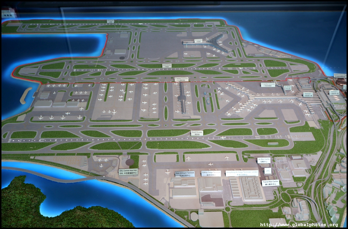 At the far end of the bridge is a scale model of the airport's future state. The third runway at the top is now in use but the new terminal next to it is still under construction but should come online in another year or so.