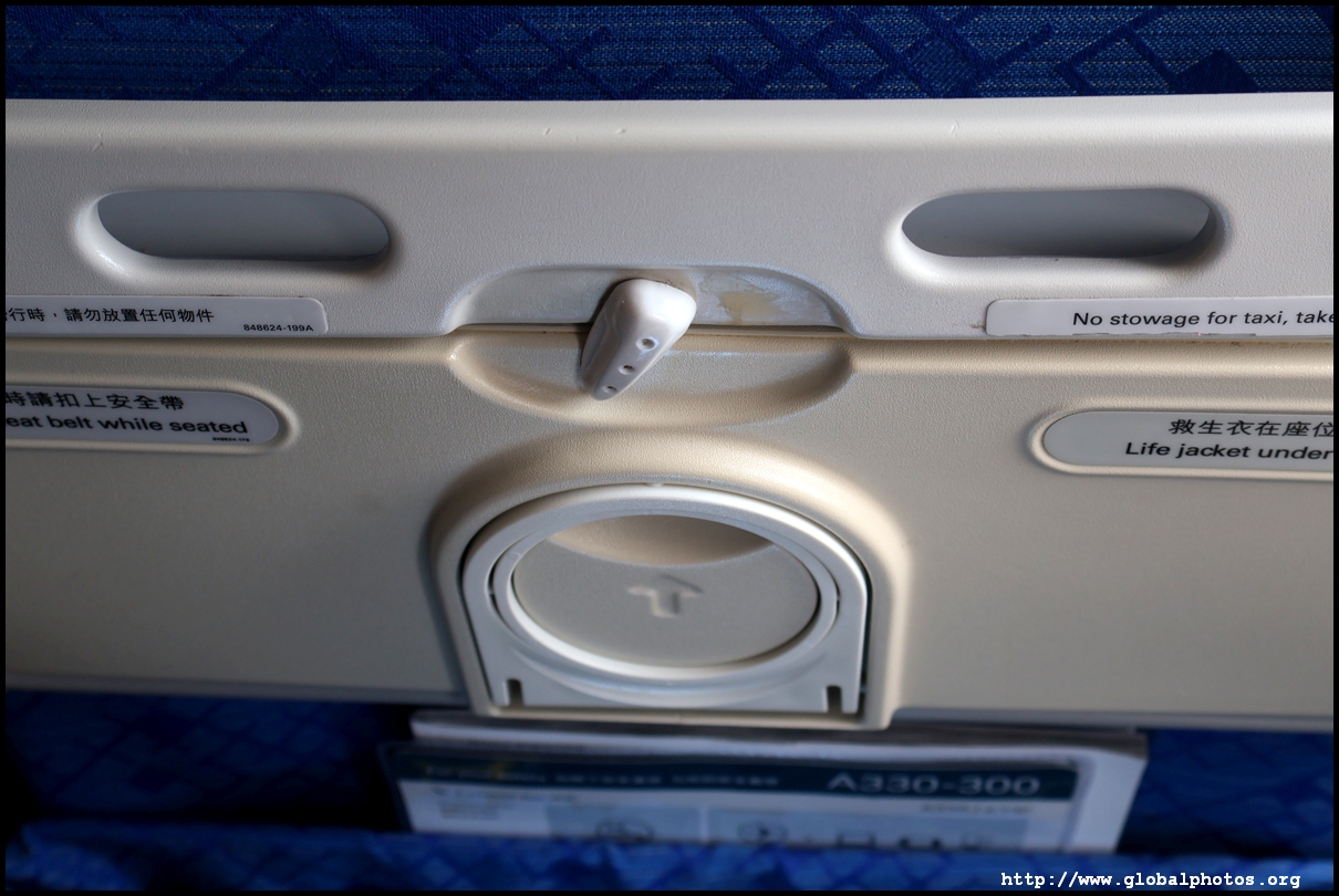 Today's flight is operated by an older A330. Although it's an old design, its features are still quite smart to this day, such as the small compartment to hold your phone and the beverage holder so you don't need to open your tray table.