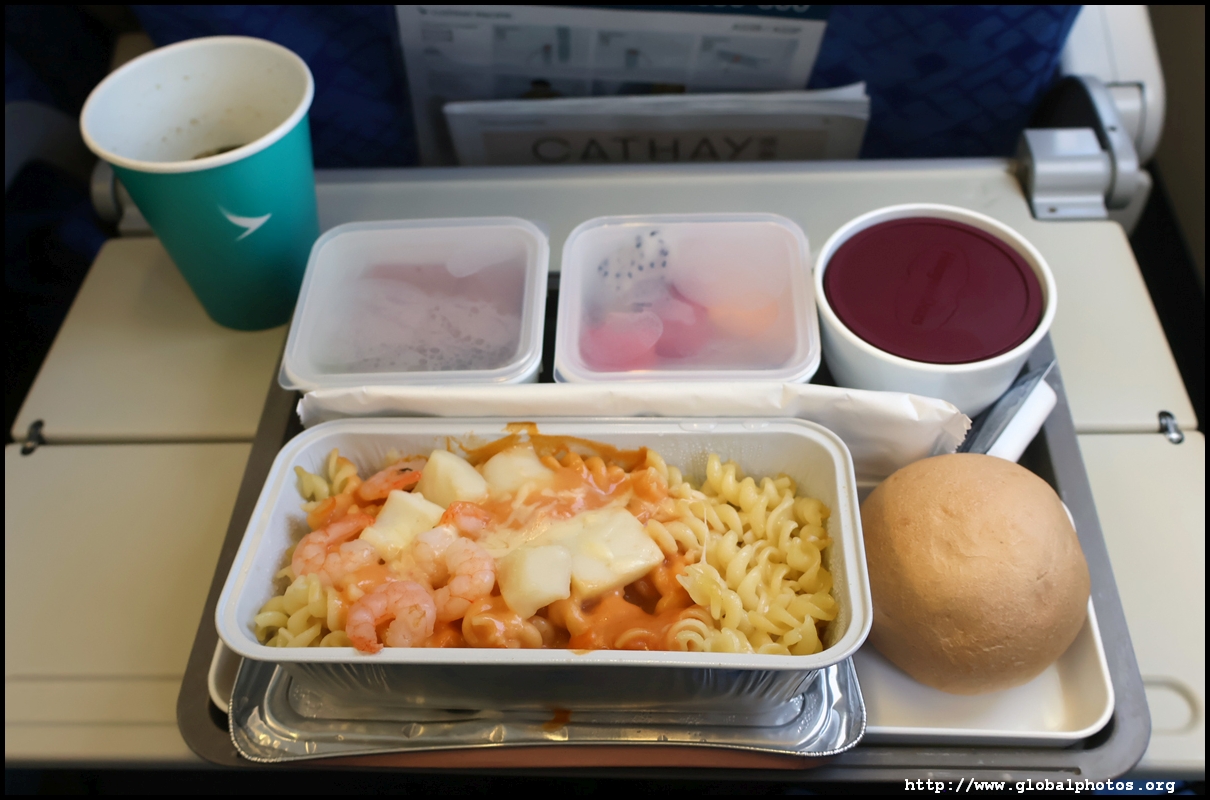 There were 2 choices for lunch - chicken rice or seafood pasta. I picked the pasta and it tasted decent with a nice lobster-like sauce base and bits of squid and small shrimp. The Haagen Daz ice-cream is fairly standard for Hong Kong departures.