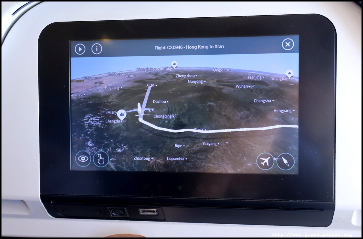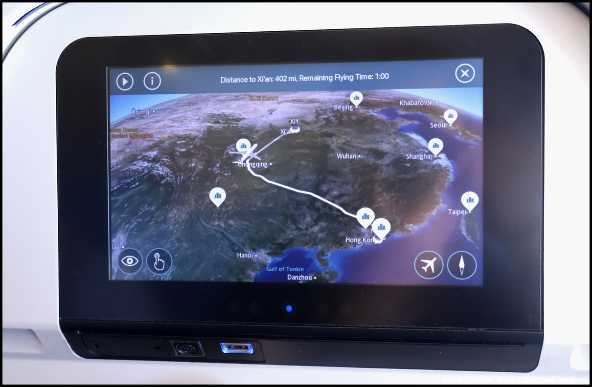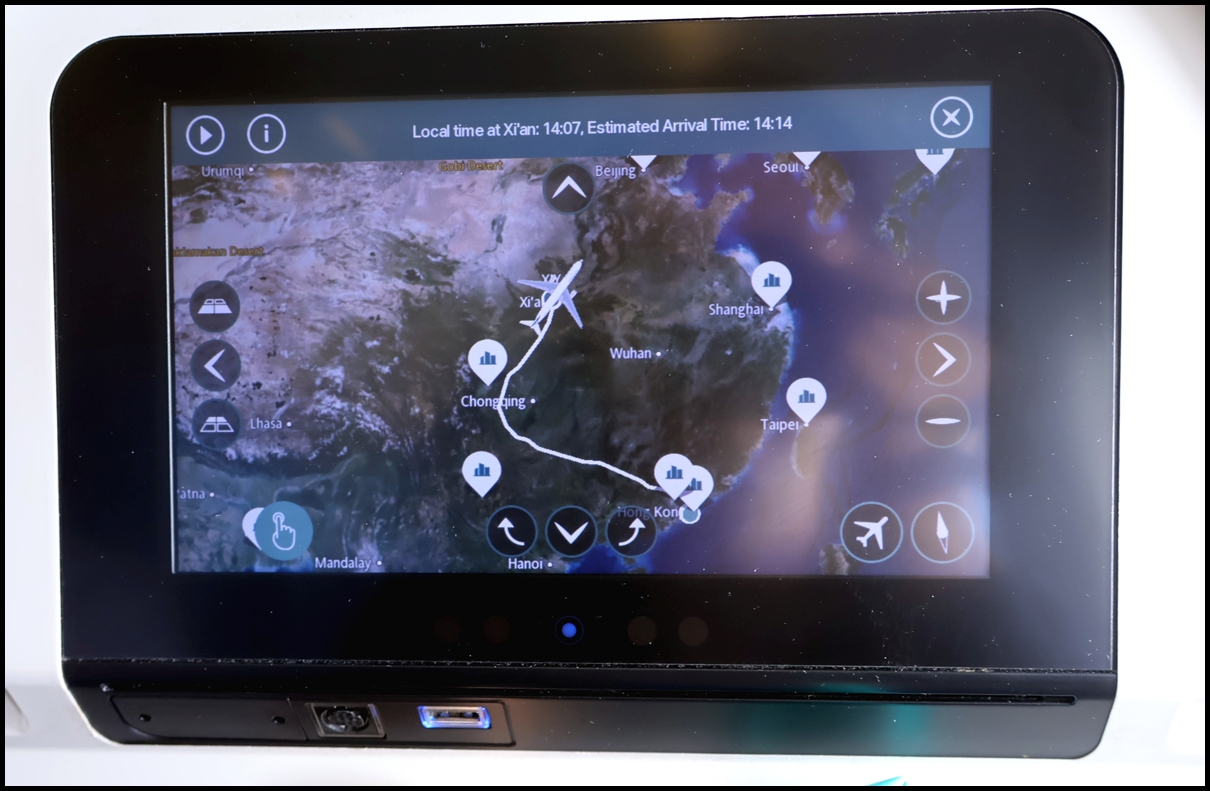 The weather stayed decent throught the journey and it as soon time to descend to Xian. That's when the skies turned cloudy. Going through the flight map on the IFE, I noticed we seem to have taken a longer route looping around to reach Xian, which was strange because there are no major storms along the way. But it's China after all, where civilian airspace is tightly regulated as are the set flight paths.