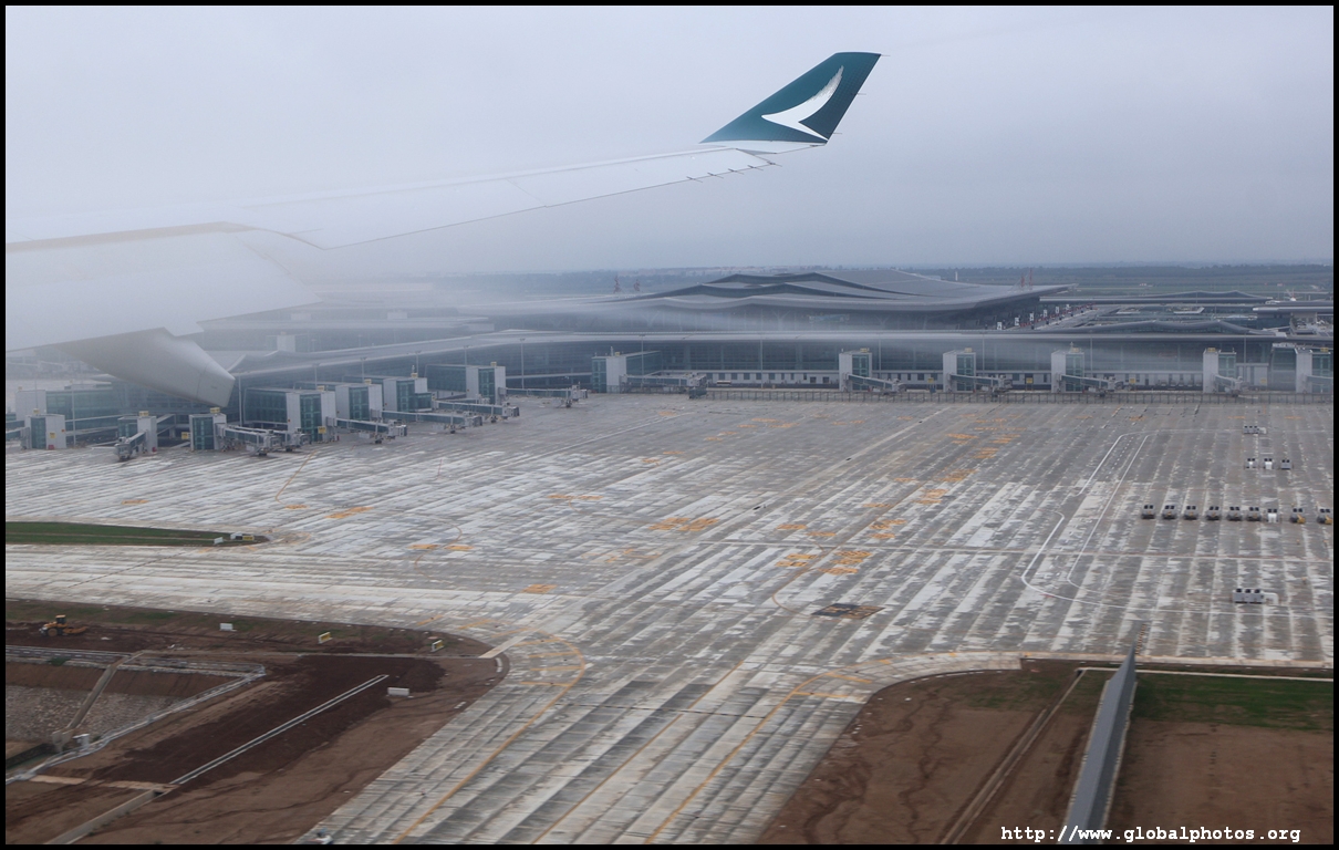 I couldn't even see the ground until seconds before touch-down. Ningxia's weather forecast for the next few days didn't look good either with clouds and rain. Why would it rain in the desert? We landed at 2:15pm and pulled into a fairly empty Terminal 5. I saw parts of the tarmac cordoned off so they don't seem to be fully open yet.
