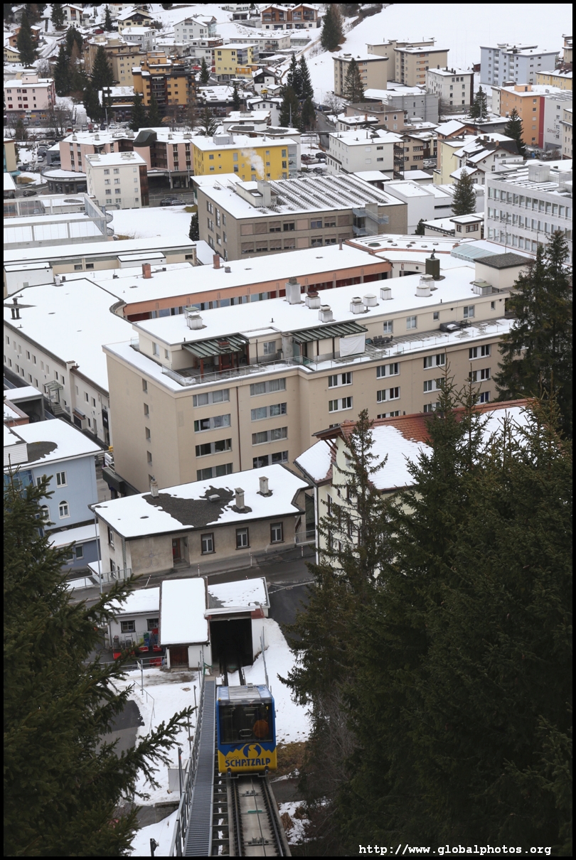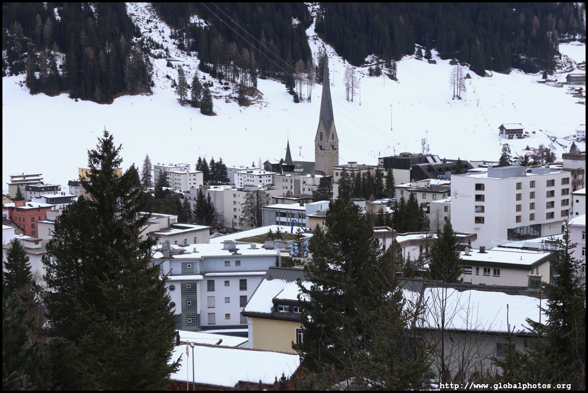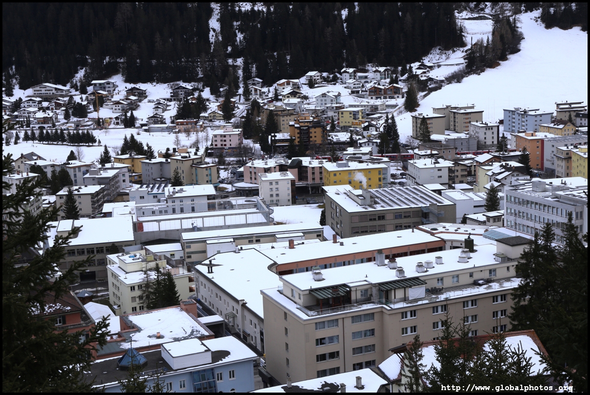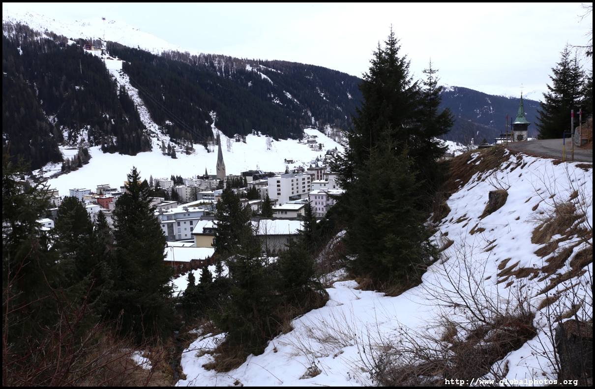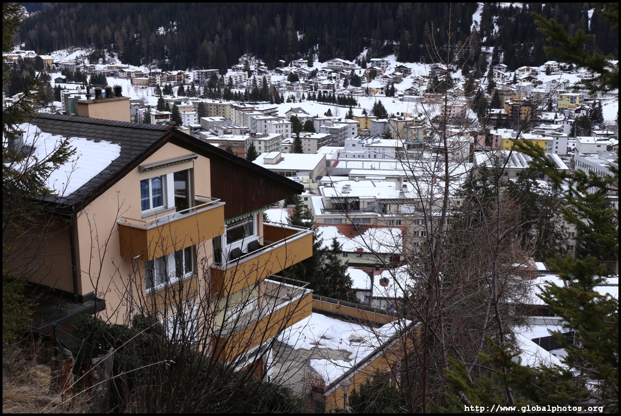 Davos is surrounded by mountains and there are many cable cars that can take you up for a good view. However, that can get expensive and I didn't get enough blue sky to make it worthwhile. During the summer, hotels provide a Premium Card if you stay in town for at least a night, which offers significant discounts for ascents around town. This is similar to St. Moritz, although that card offered free cable cars around town but you need to stay for 2 nights.For a free but nevertheless nice vantage point, head slightly uphill from town to Hohe Promenade. There is a wooden overpass above the Schatzalpbahn track with a wide view. While it was a little slippery to get uphill, the path itself was clear even in the middle of winter.