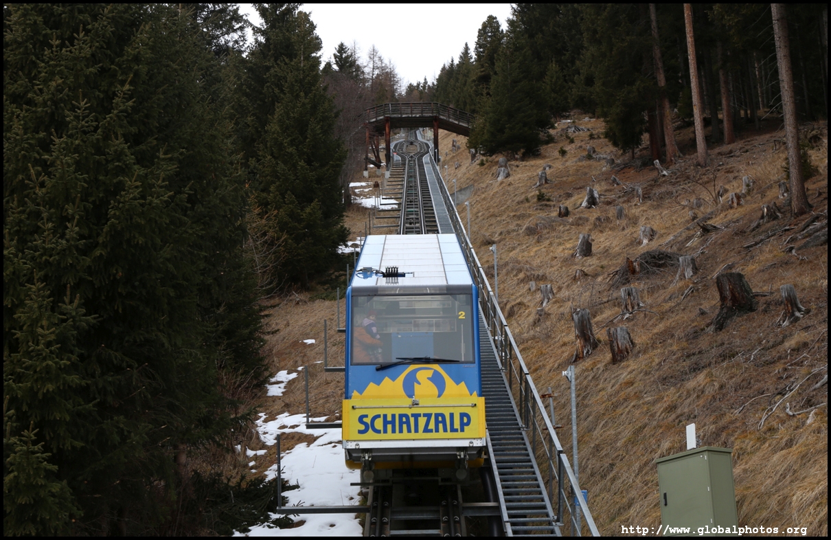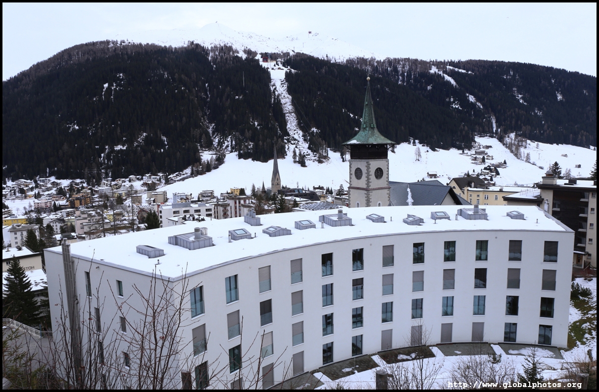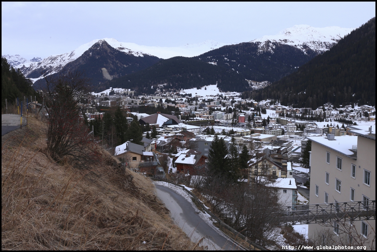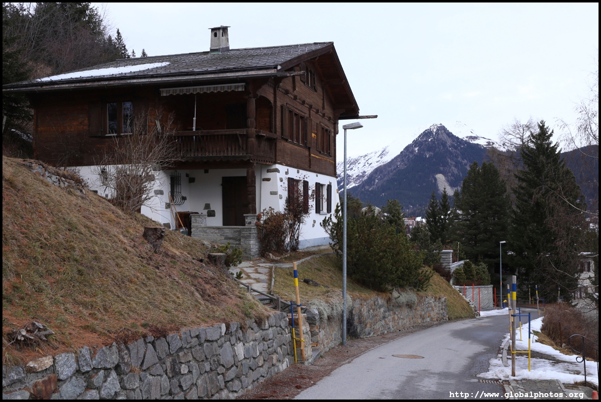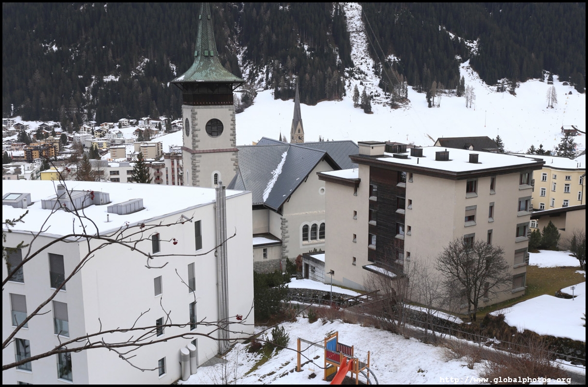 Davos is surrounded by mountains and there are many cable cars that can take you up for a good view. However, that can get expensive and I didn't get enough blue sky to make it worthwhile. During the summer, hotels provide a Premium Card if you stay in town for at least a night, which offers significant discounts for ascents around town. This is similar to St. Moritz, although that card offered free cable cars around town but you need to stay for 2 nights.For a free but nevertheless nice vantage point, head slightly uphill from town to Hohe Promenade. There is a wooden overpass above the Schatzalpbahn track with a wide view. While it was a little slippery to get uphill, the path itself was clear even in the middle of winter.