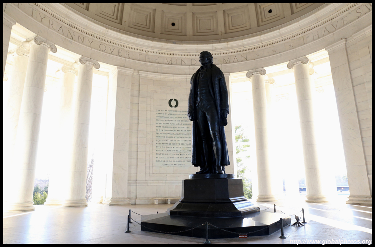 The Jefferson Memorial was conceived by FDR, who believed his role deserved a monument just like Lincoln. Dedicated in 1943, his statue was later recast in bronze and now looks towards the White House.