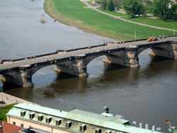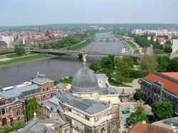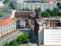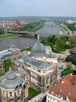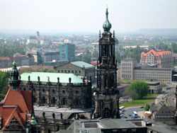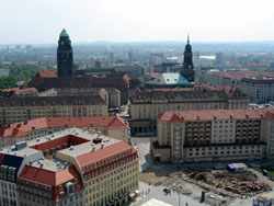IntroductionThe Frauenkirche was erected between 1726 and 1743 following the designs of George Bähr. Its characteristic dome, called the "stone bell" owing to its shape, collapsed on February 15th, 1945 under Allied bombing. It was rebuilt and consecrated on October 30, 2005. | ||