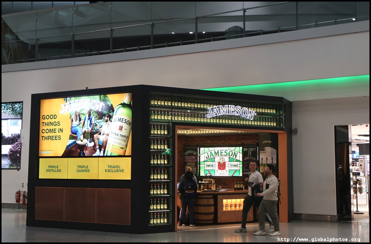 Duty-free shops offer the typical tourist fare, such as chocolates, whiskey, and Guinness.