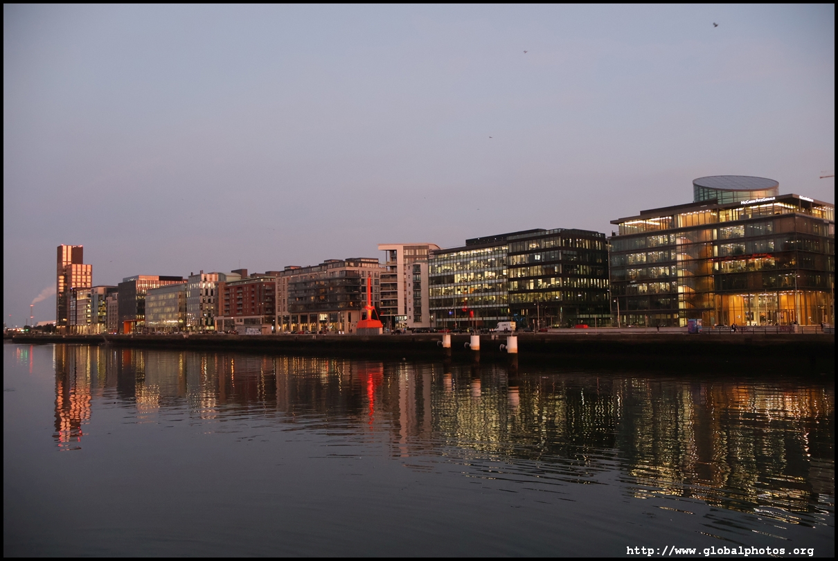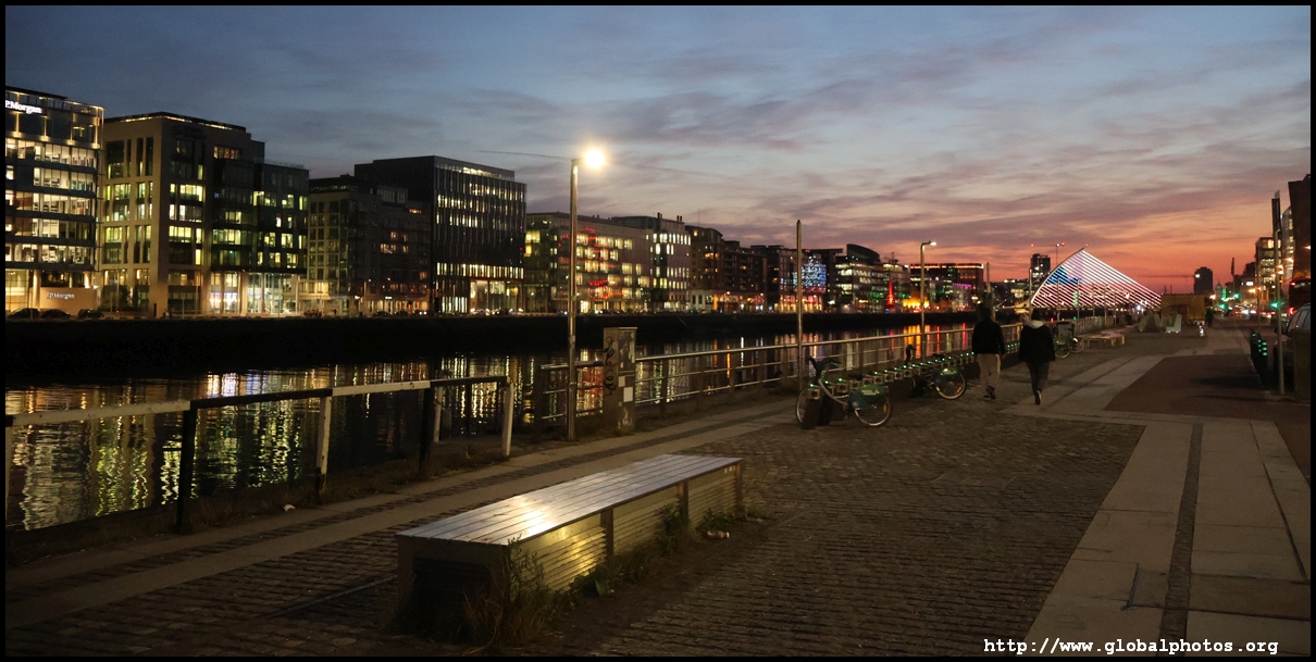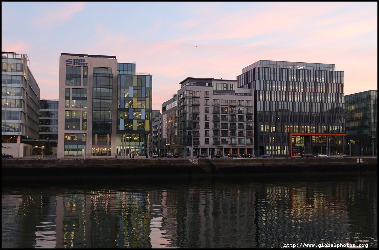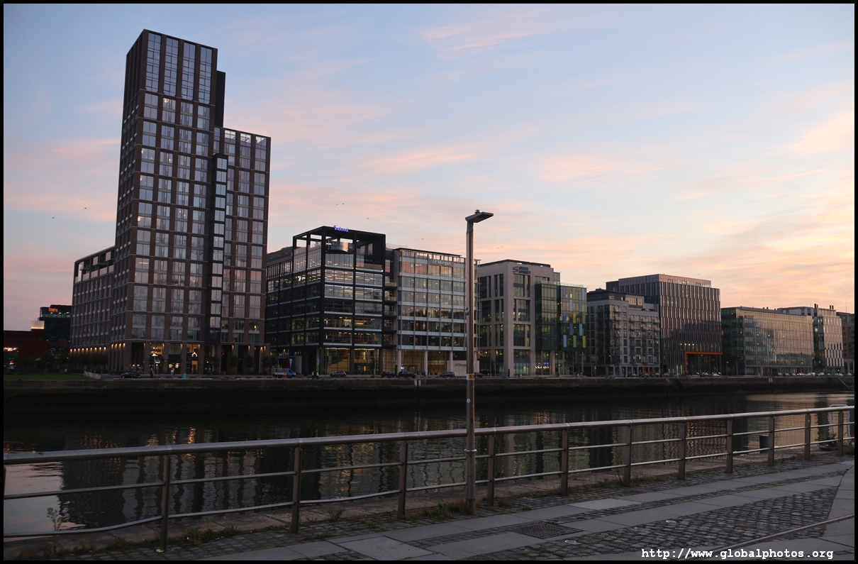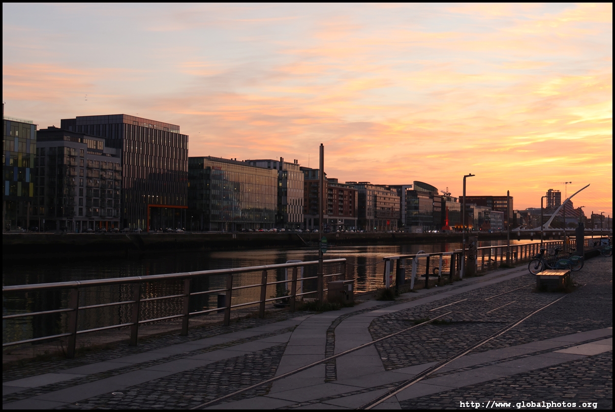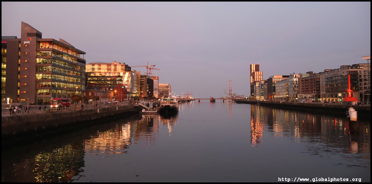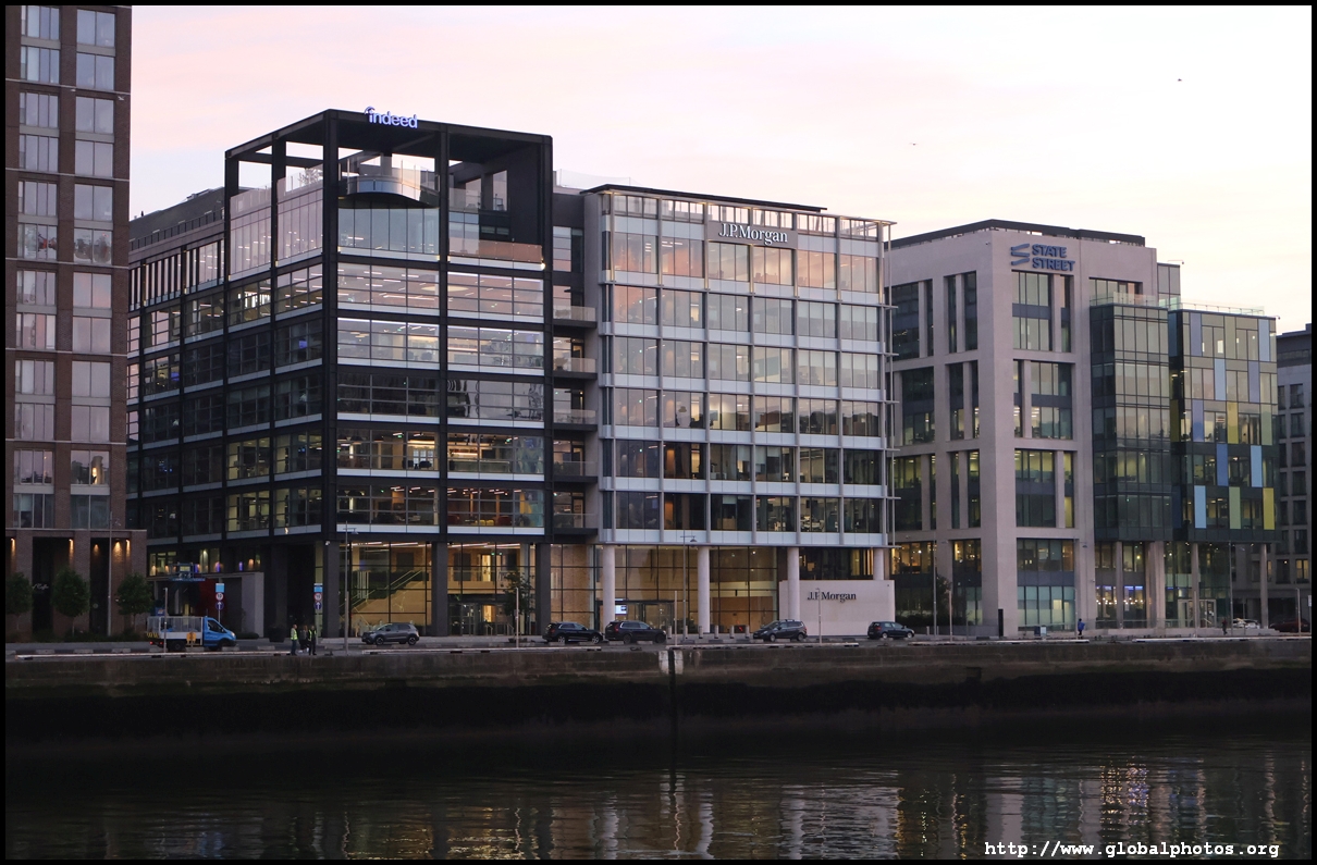 A nice waterfront promenade runs along the River Liffey's northern banks, commanding a view of the financial institutions on the other side.